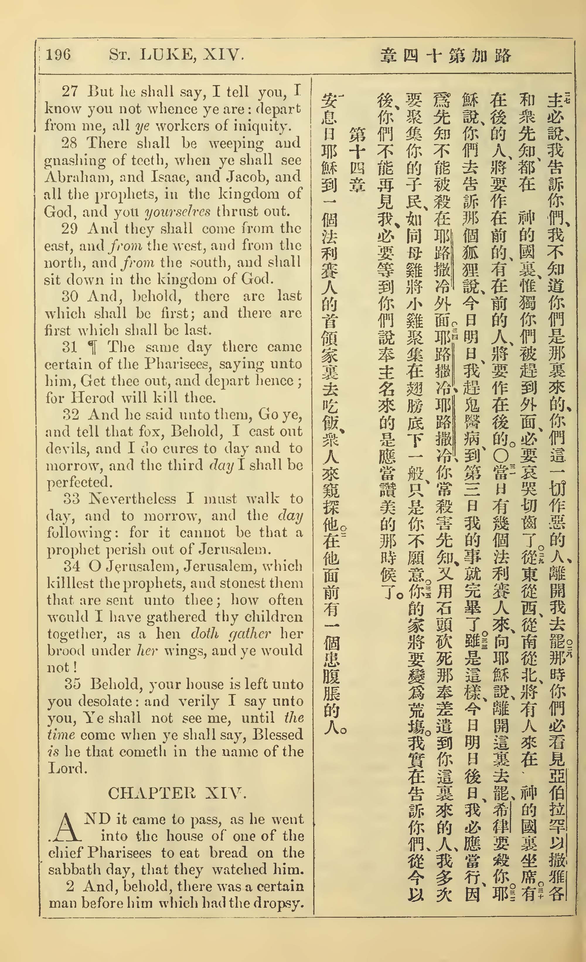 1902年新约全书(中英对照) 路加福音 13 章 27 节到 14 章 2 节