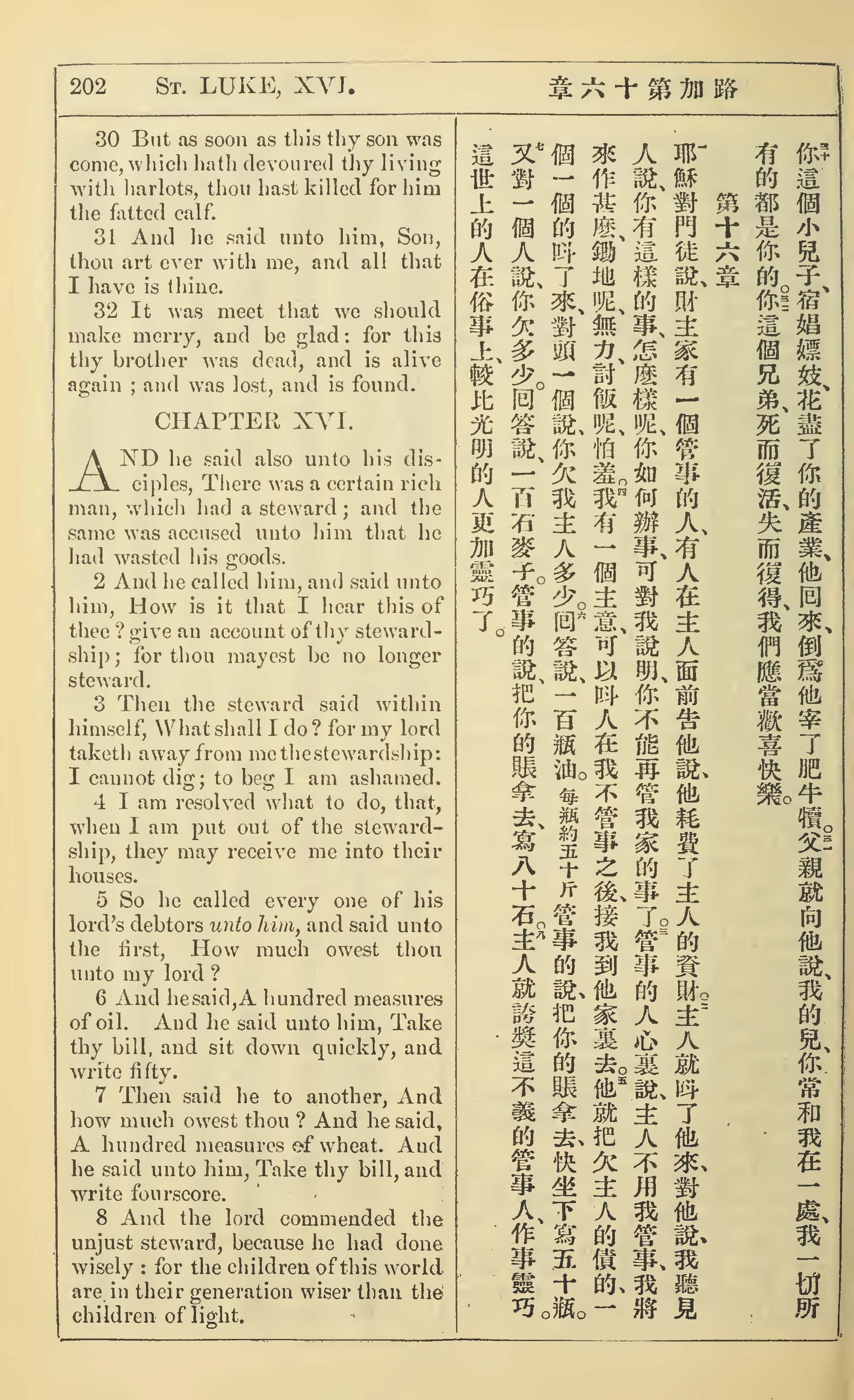 1902年新约全书(中英对照) 路加福音 15 章 30 节到 16 章 8 节
