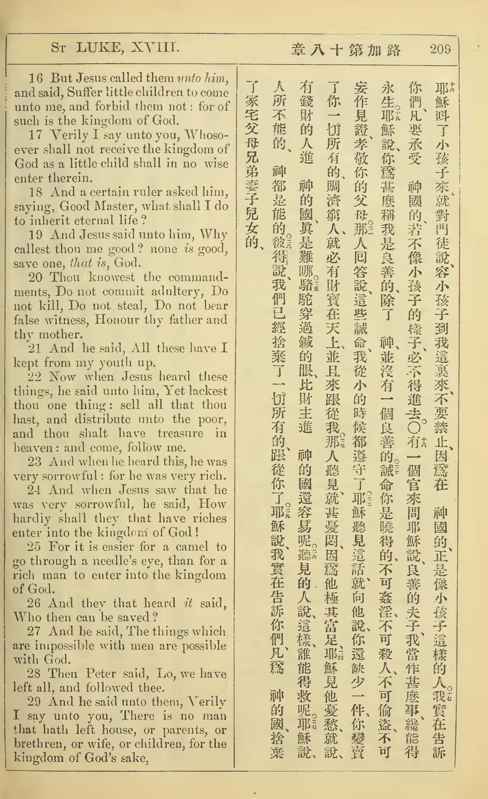 1902年新约全书(中英对照) 路加福音 18 章 16 节到 18 章 29 节