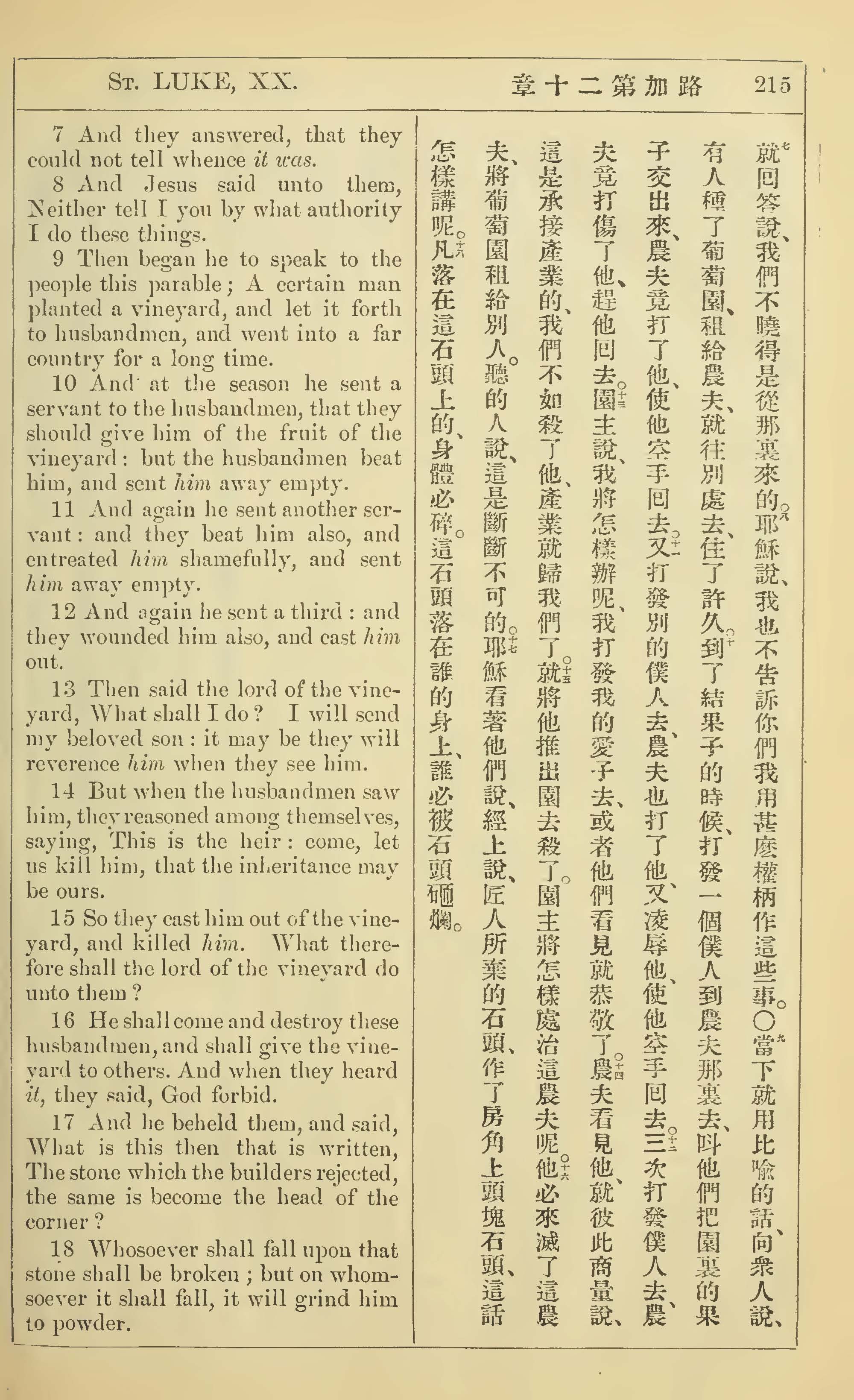 1902年新约全书(中英对照) 路加福音 20 章 7 节到 20 章 18 节