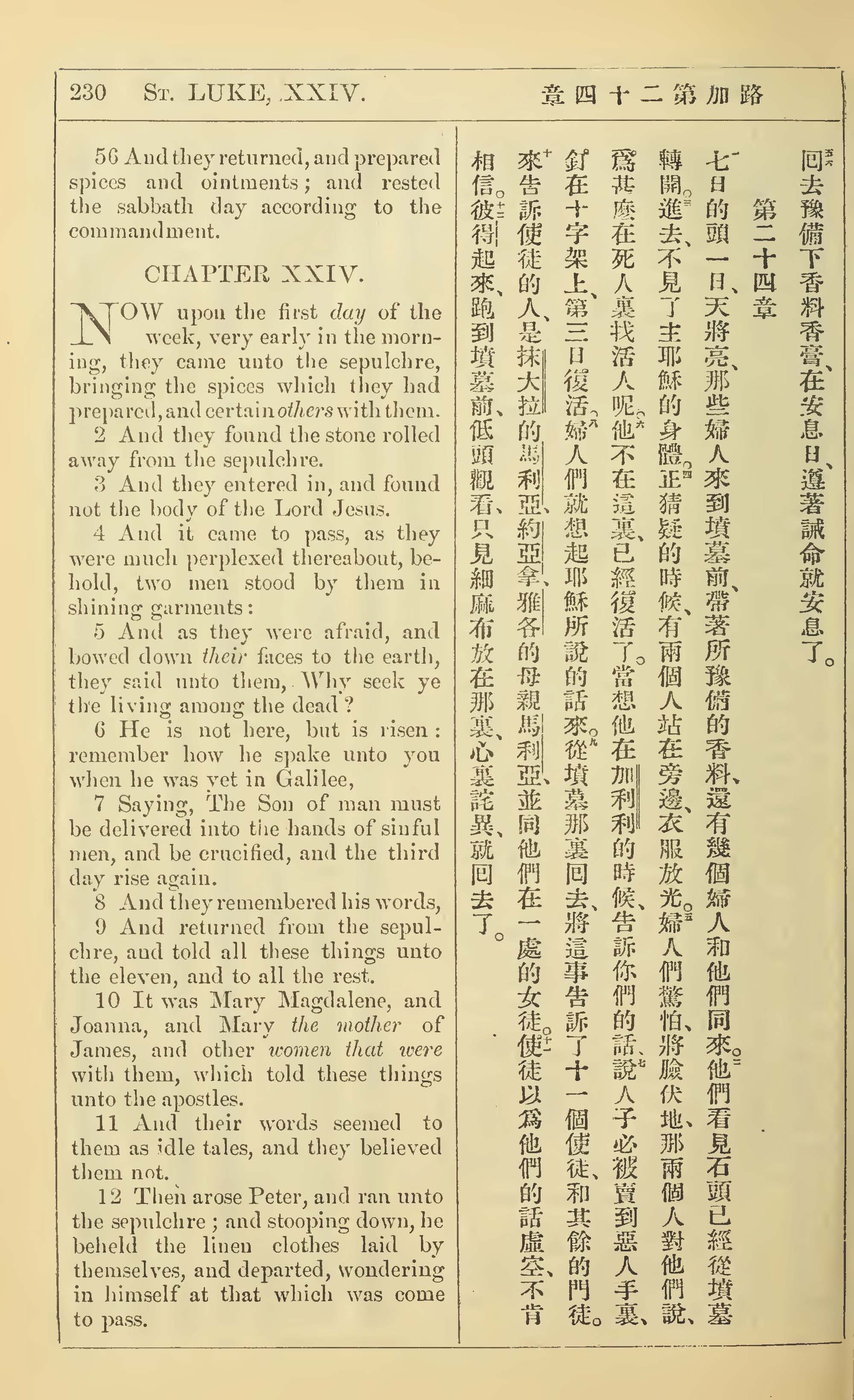 1902年新约全书(中英对照) 路加福音 23 章 56 节到 24 章 12 节