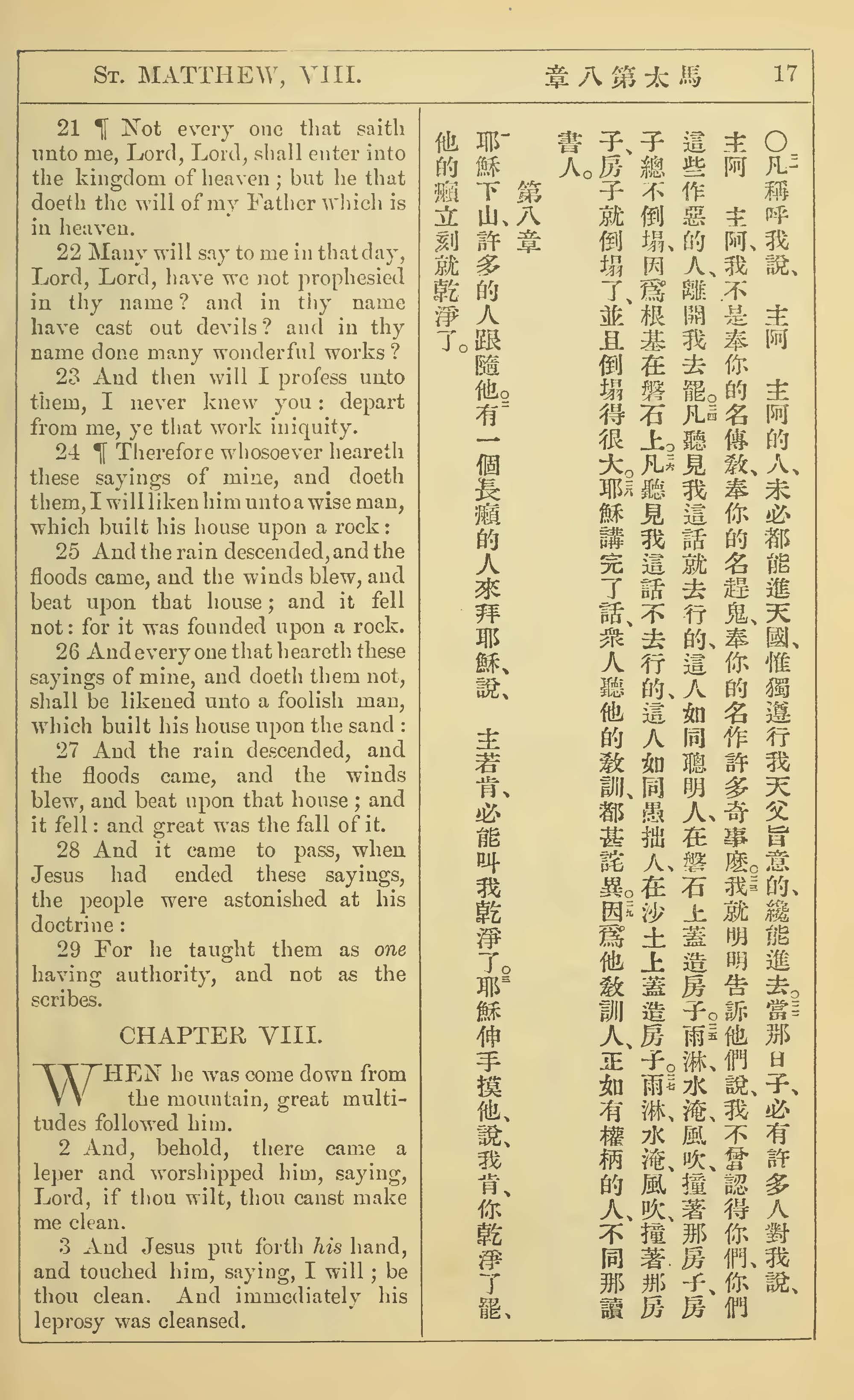 1902年新约全书(中英对照) 马太福音 7 章 21 节到 8 章 3 节