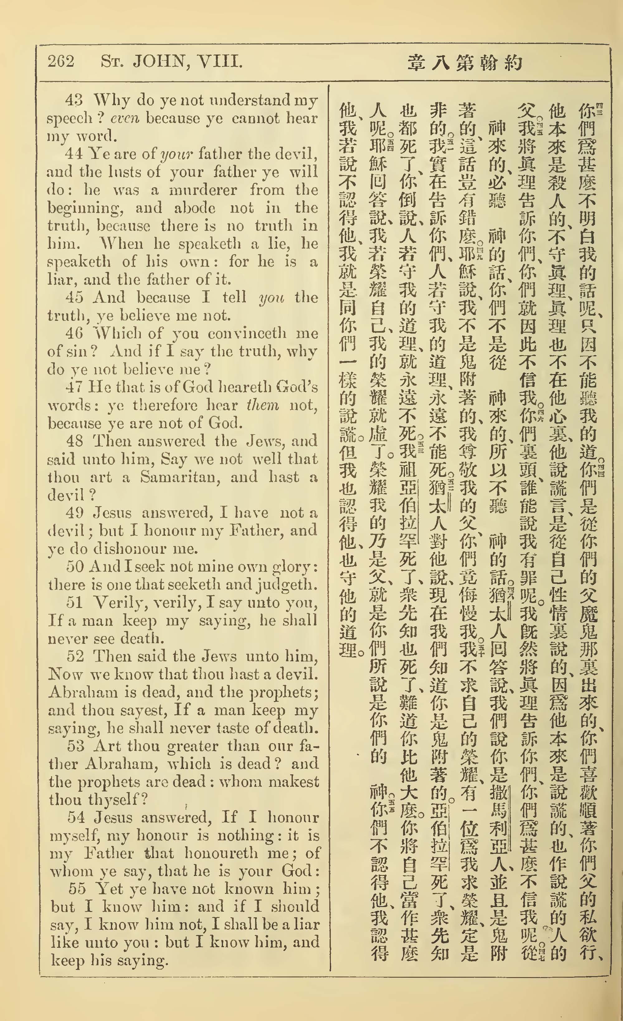 1902年新约全书(中英对照) 约翰福音 8 章 43 节到 8 章 55 节