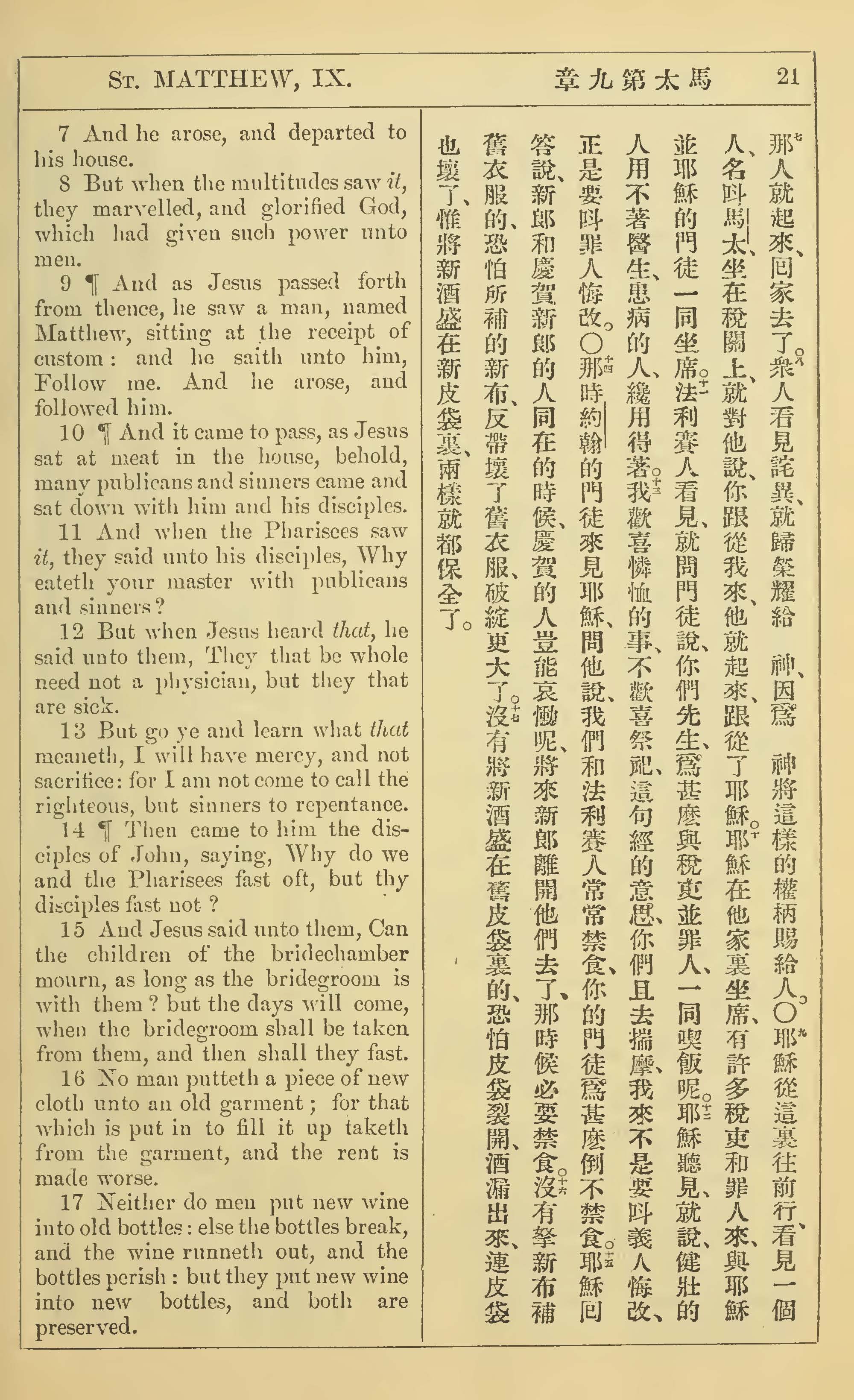 1902年新约全书(中英对照) 马太福音 9 章 7 节到 9 章 17 节