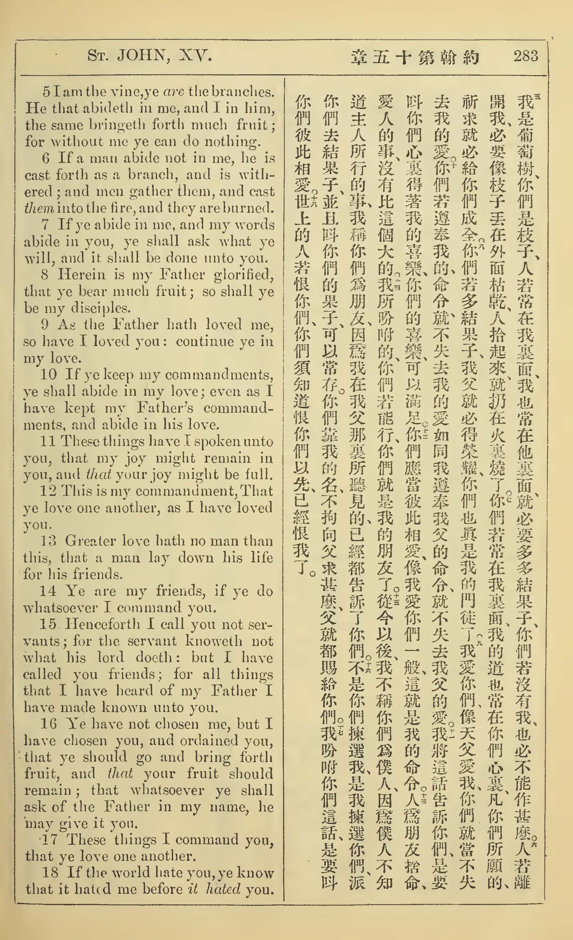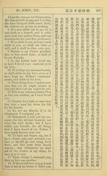 1902年新约全书(中英对照) 约翰福音 15 章 5 节到 15 章 18 节