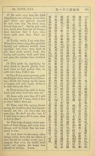1902年新约全书(中英对照) 约翰福音 21 章 17 节到 21 章 25 节