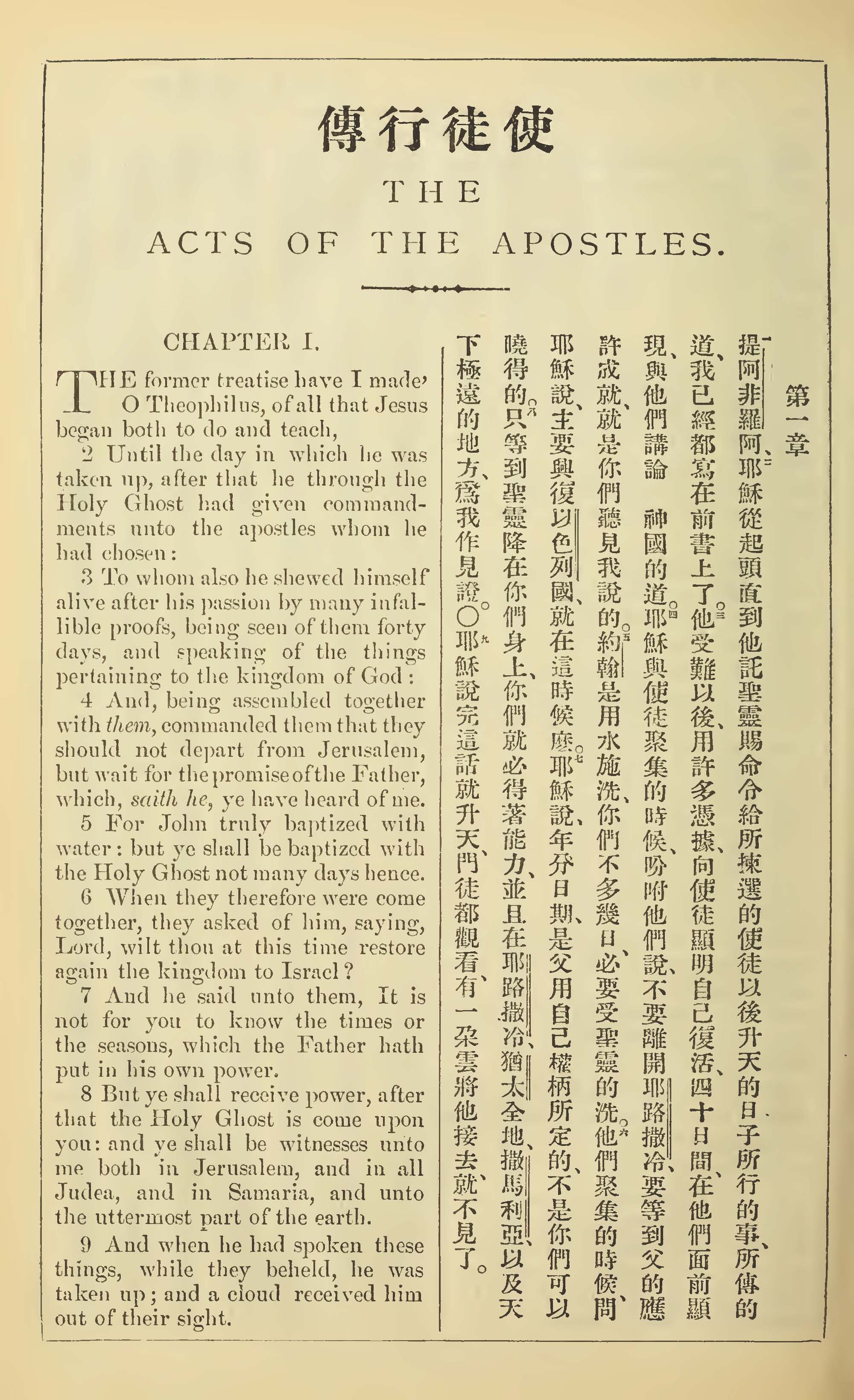 1902年新约全书(中英对照) 使徒行传 1 章 1 节到 1 章 9 节