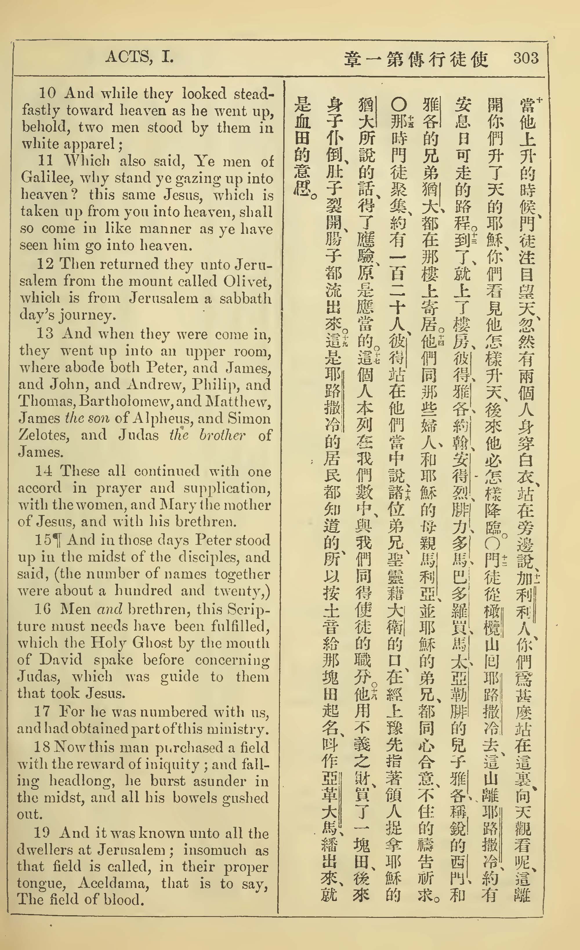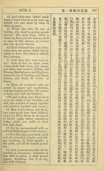 1902年新约全书(中英对照) 使徒行传 1 章 10 节到 1 章 19 节