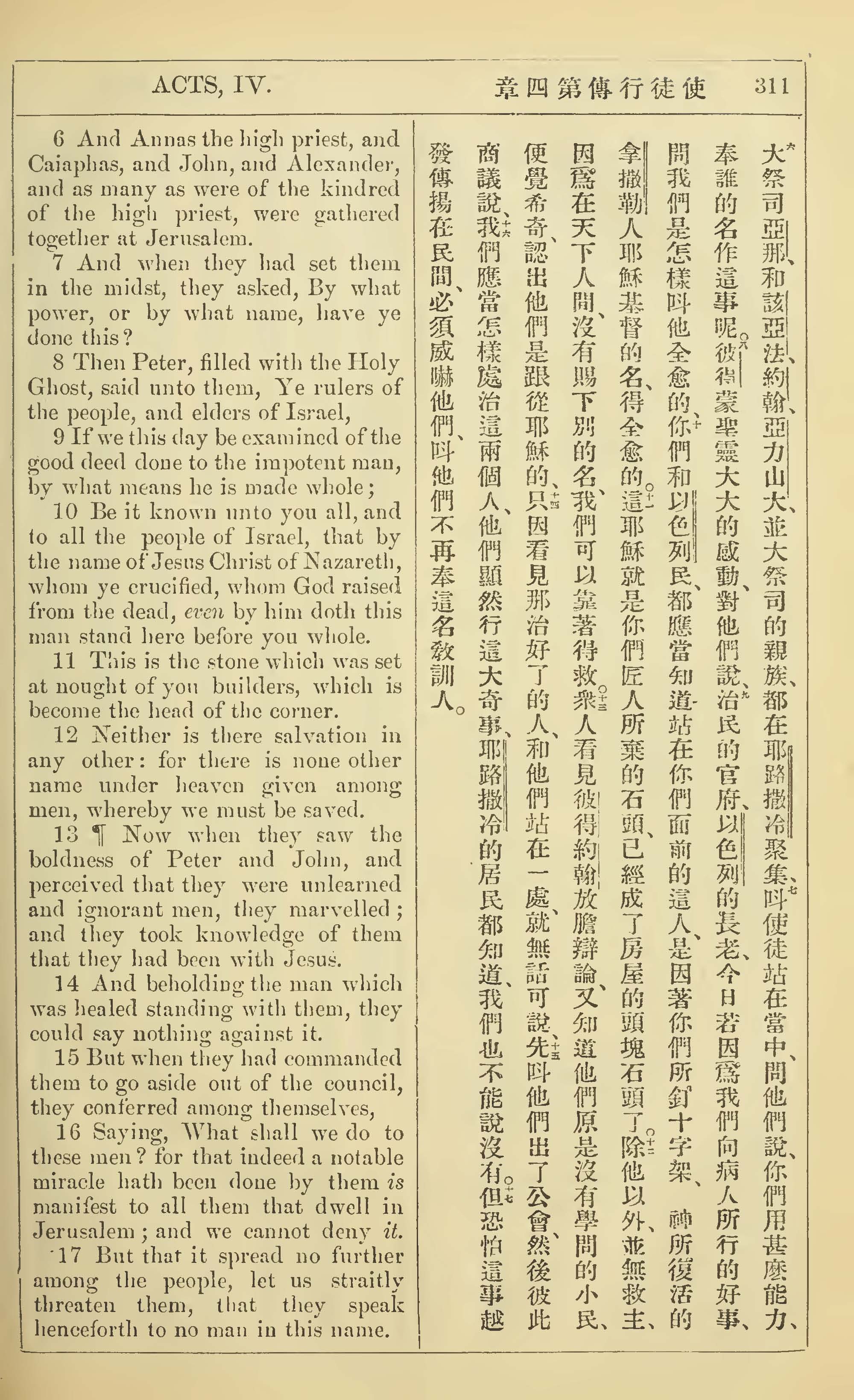1902年新约全书(中英对照) 使徒行传 4 章 6 节到 4 章 17 节