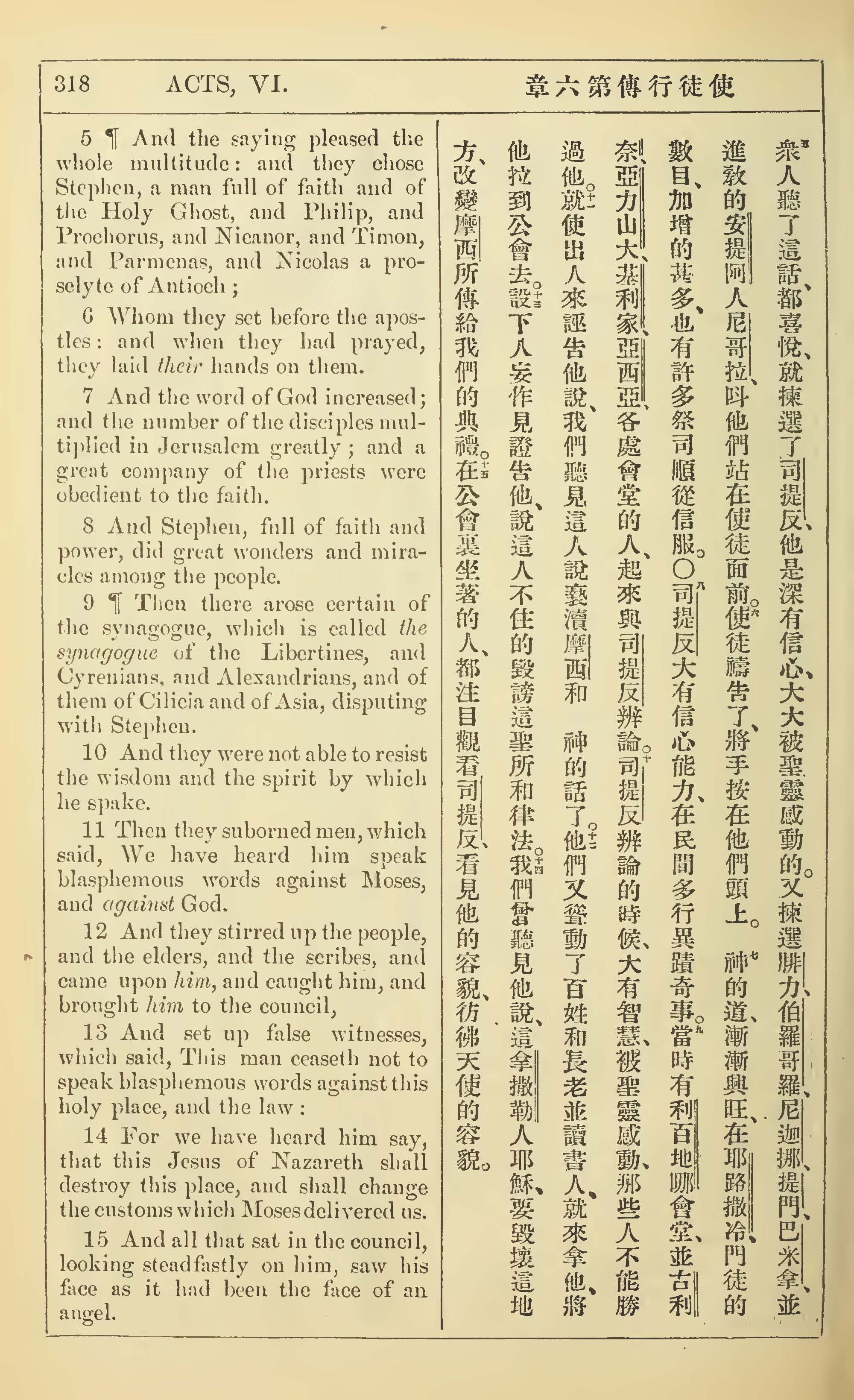1902年新约全书(中英对照) 使徒行传 6 章 5 节到 6 章 15 节