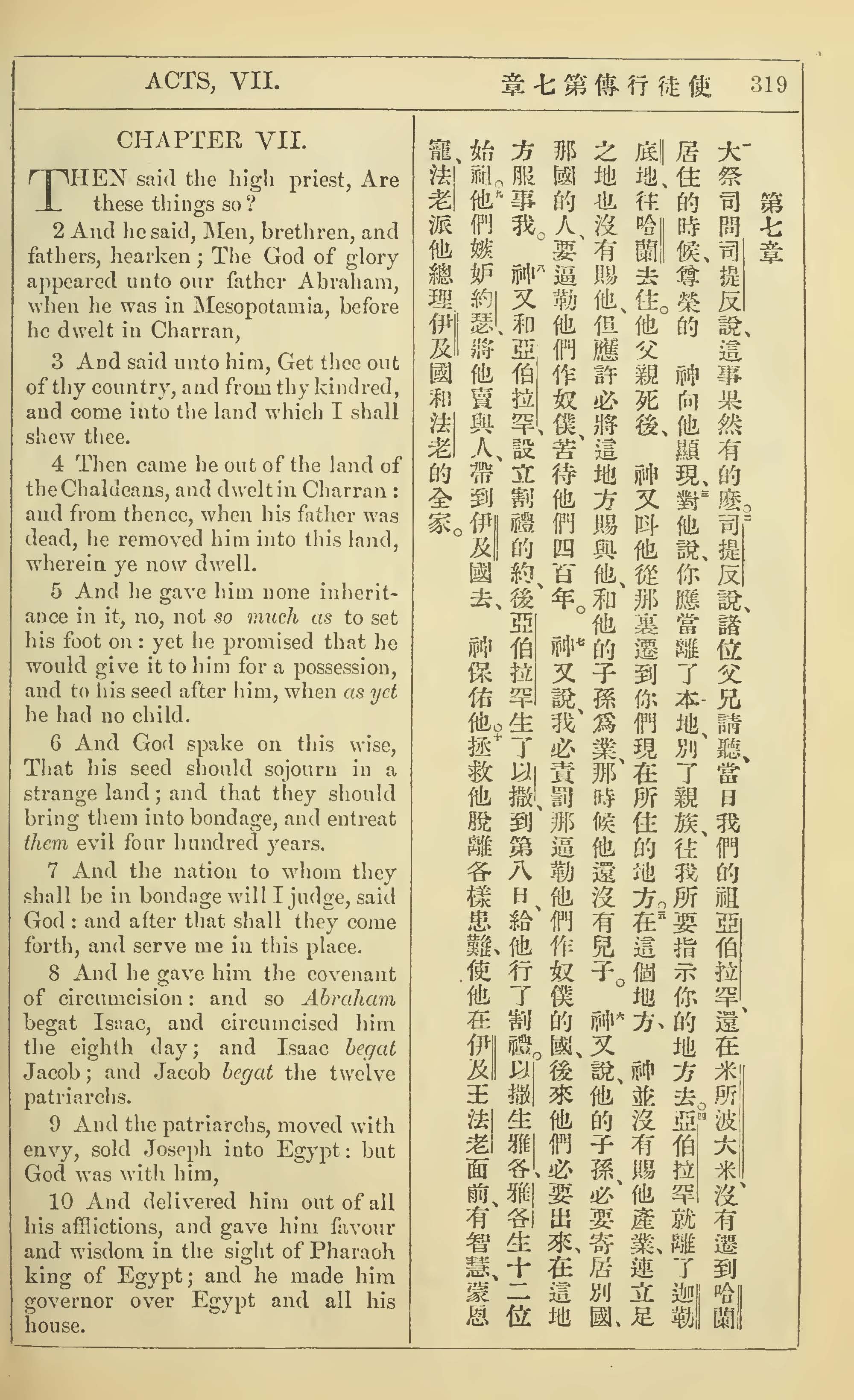 1902年新约全书(中英对照) 使徒行传 7 章 1 节到 7 章 10 节