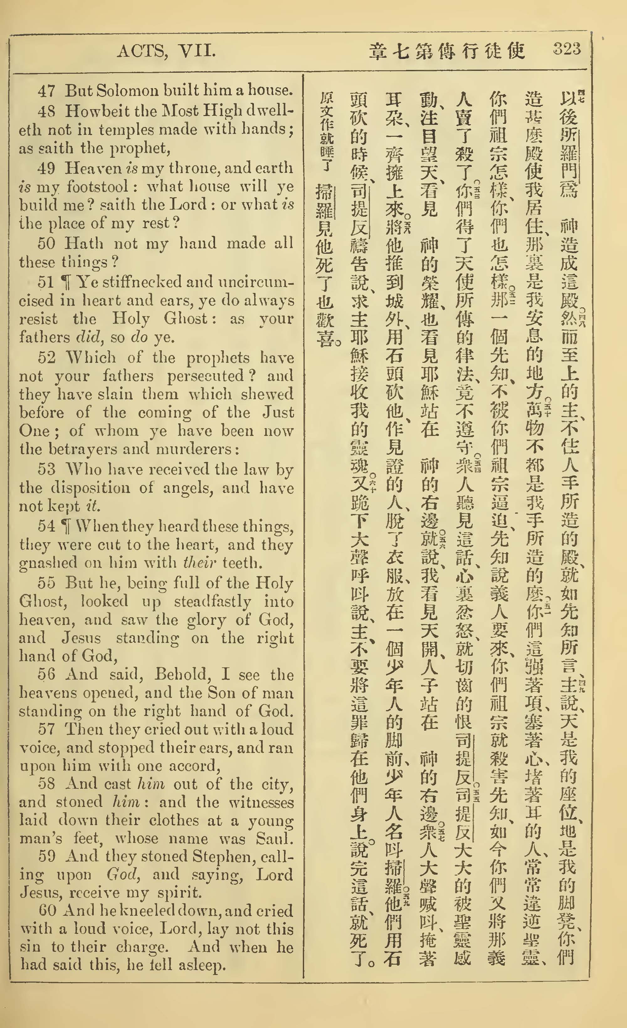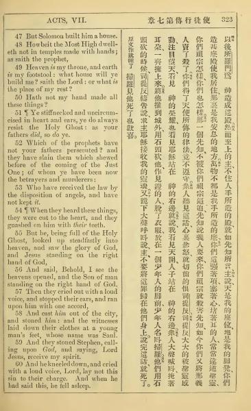 1902年新约全书(中英对照) 使徒行传 7 章 47 节到 7 章 60 节