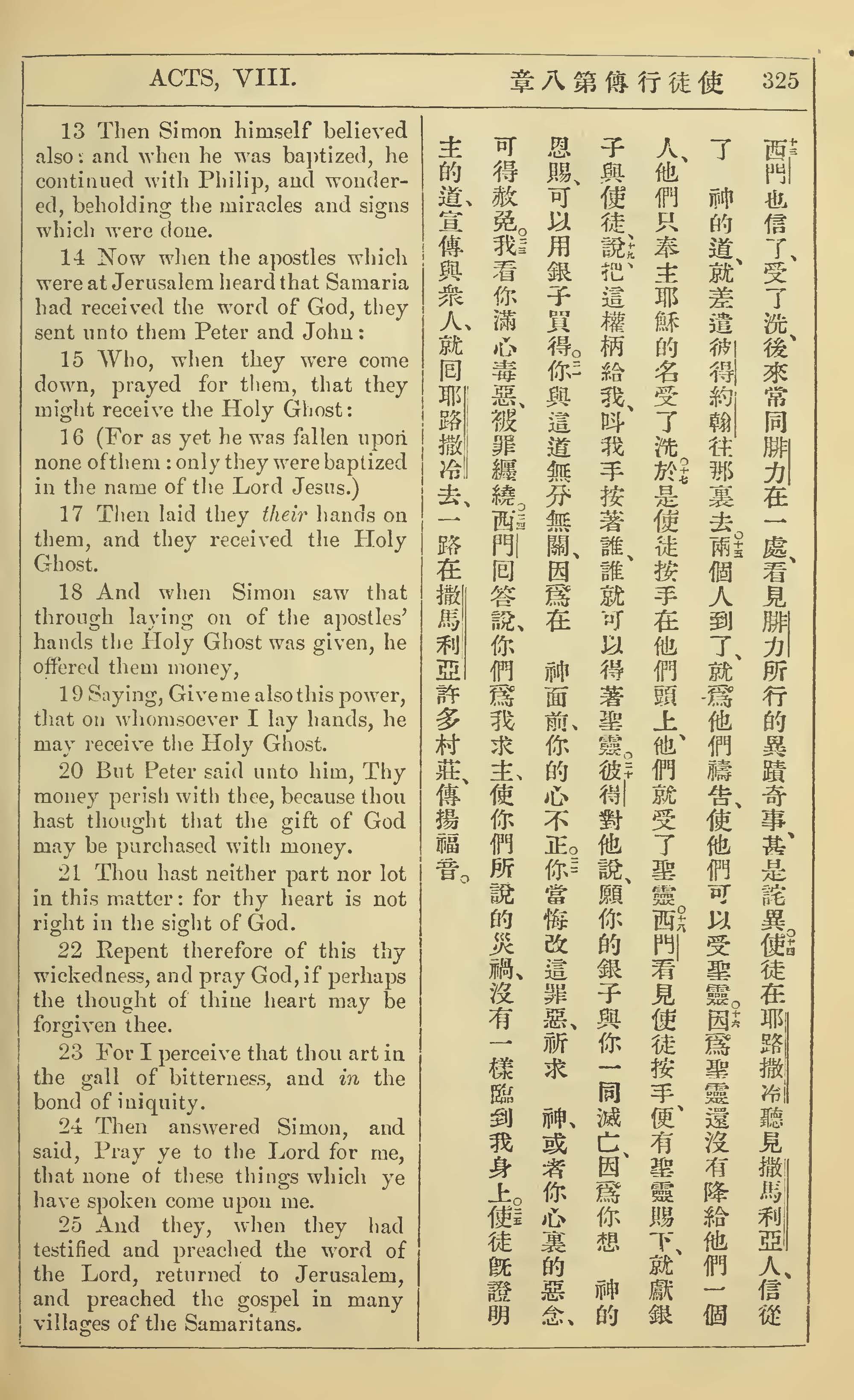 1902年新约全书(中英对照) 使徒行传 8 章 13 节到 8 章 25 节