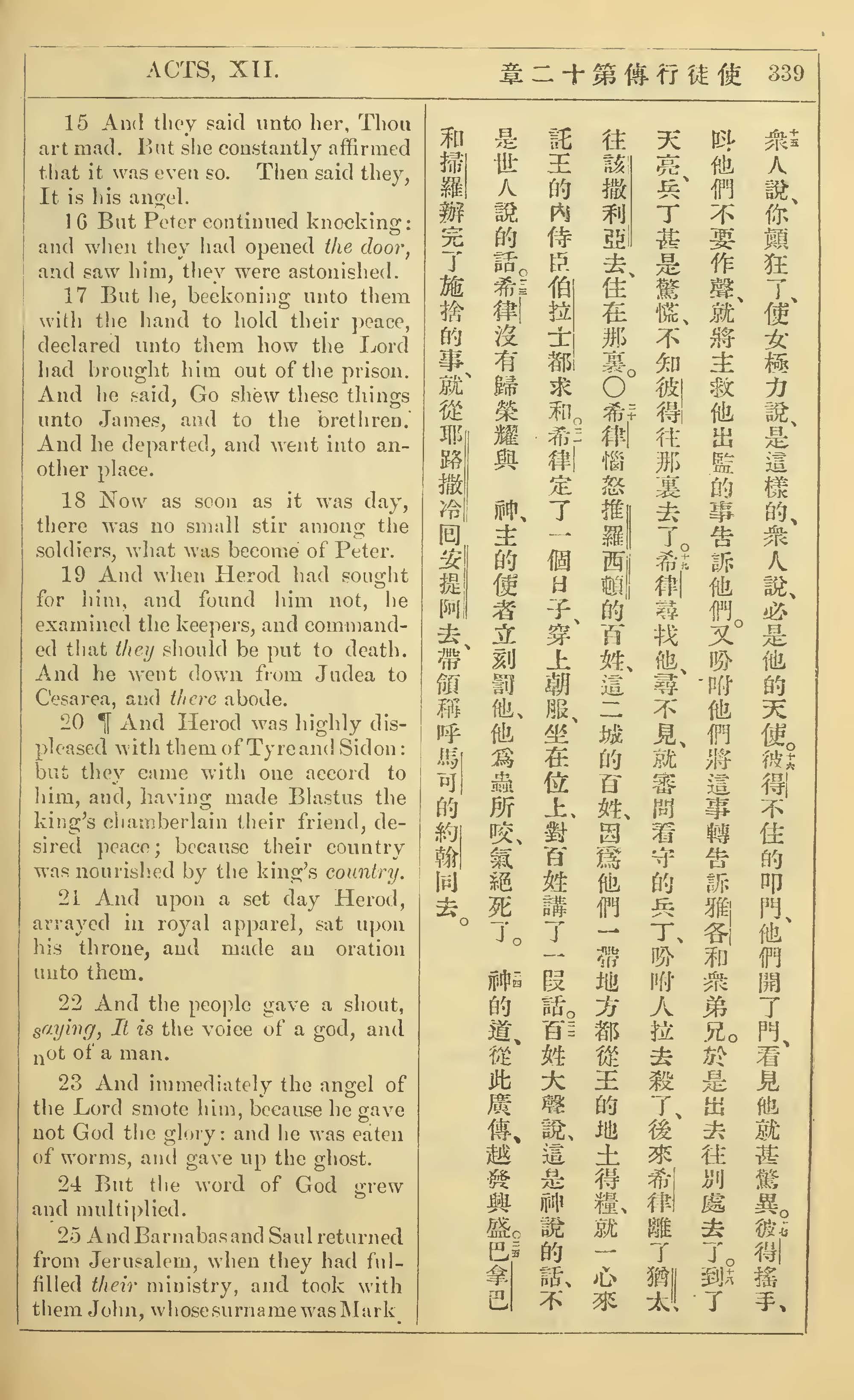 1902年新约全书(中英对照) 使徒行传 12 章 15 节到 12 章 25 节