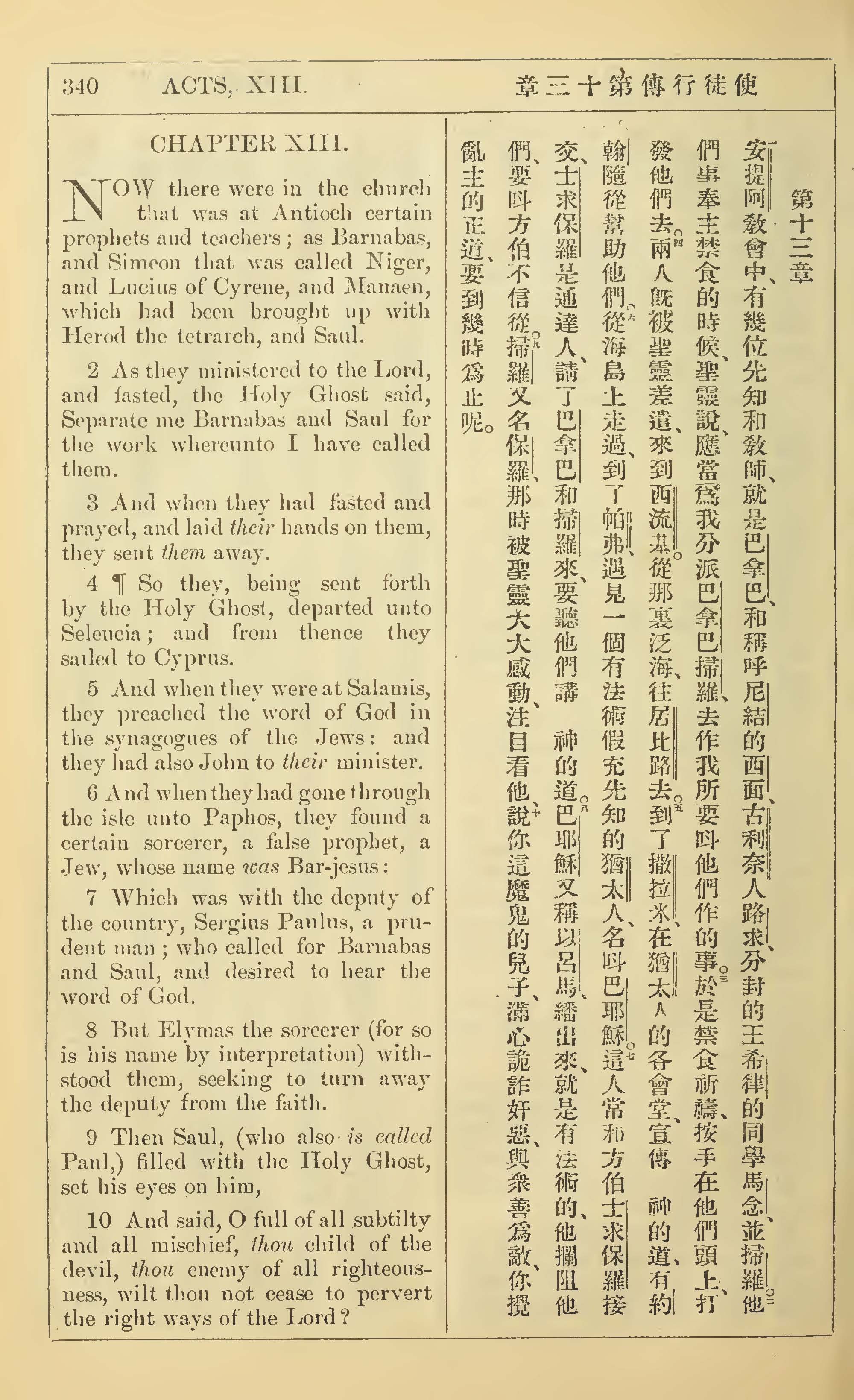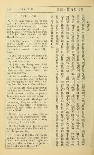 1902年新约全书(中英对照) 使徒行传 13 章 1 节到 13 章 10 节