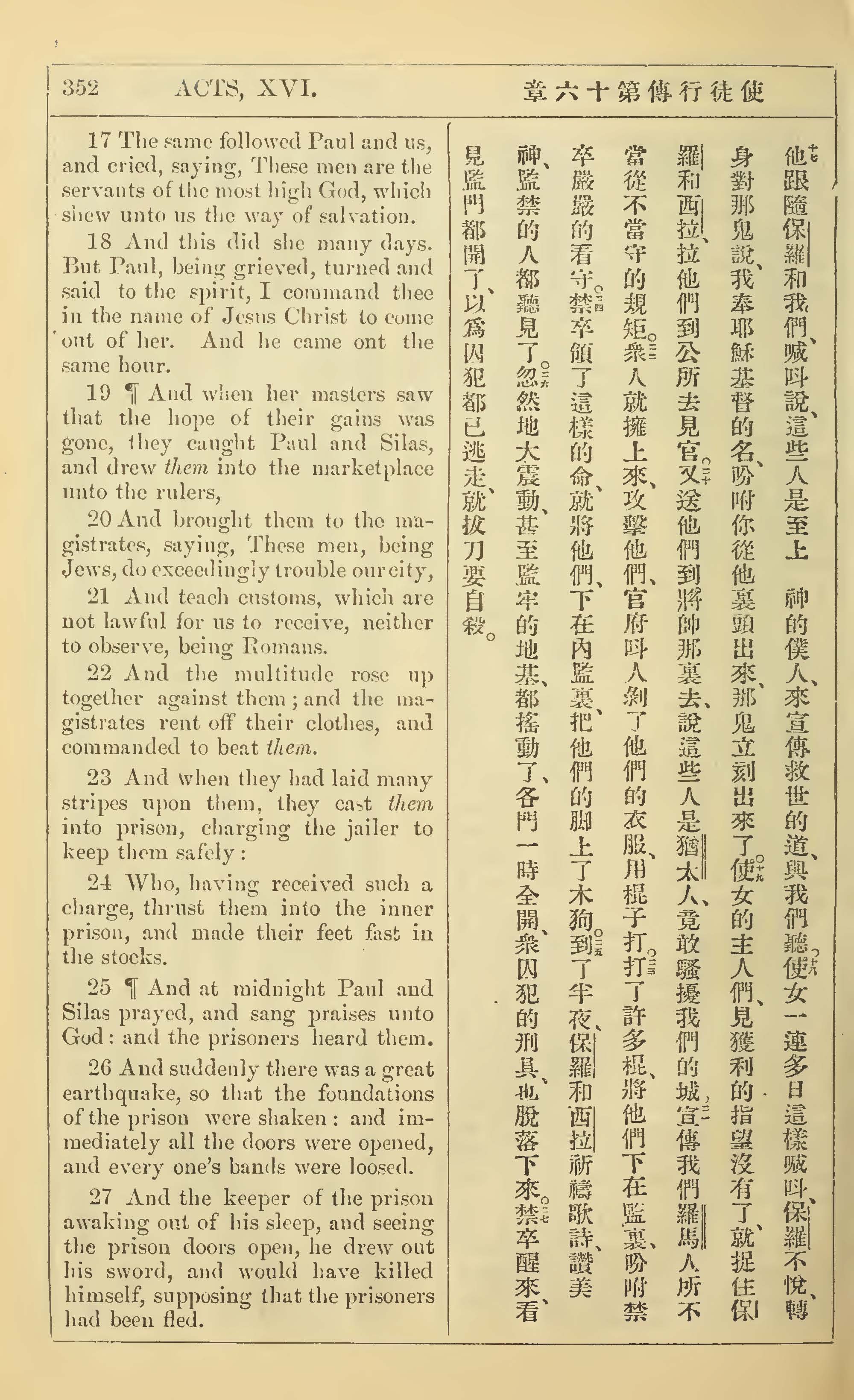 1902年新约全书(中英对照) 使徒行传 16 章 17 节到 16 章 27 节