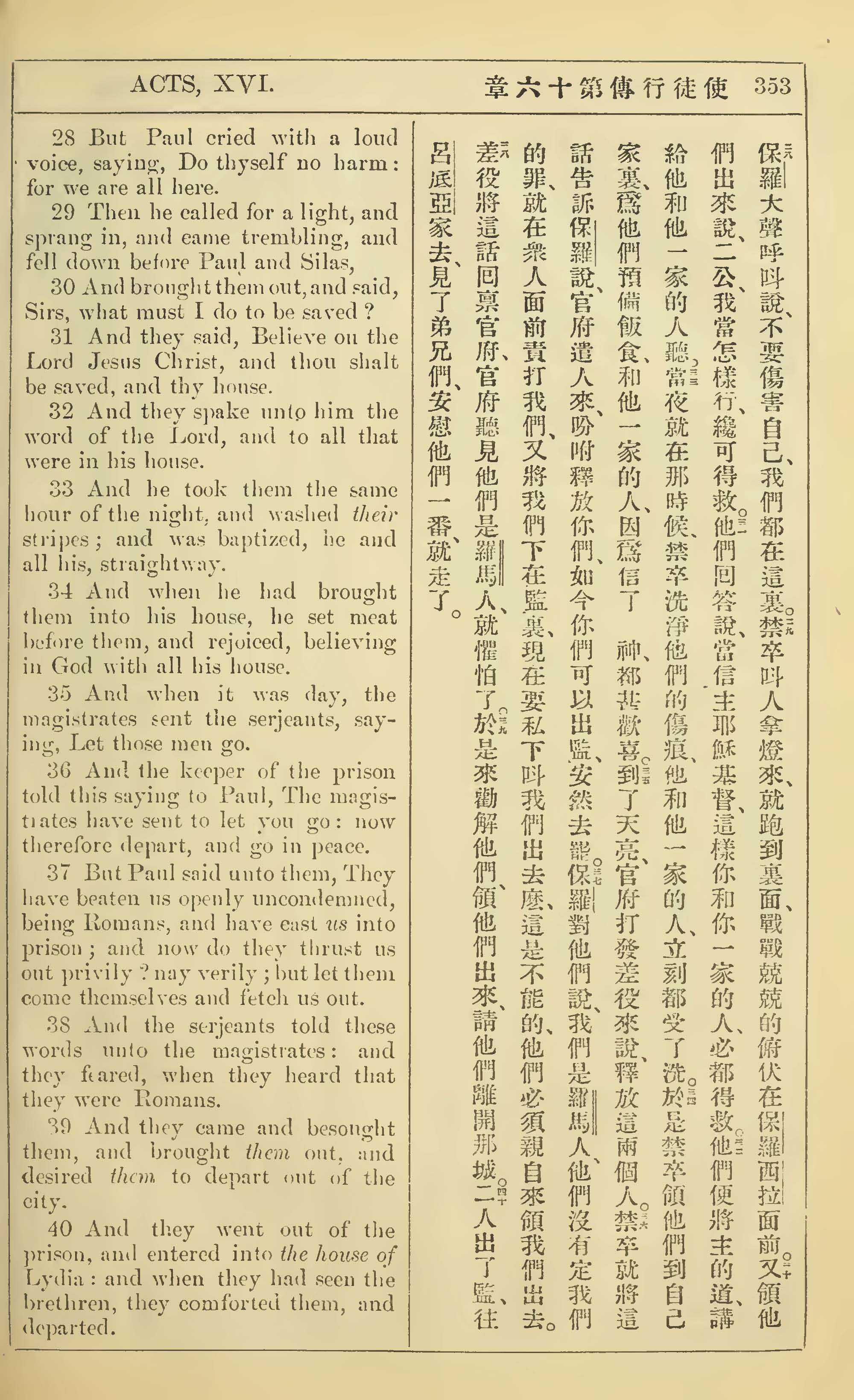 1902年新约全书(中英对照) 使徒行传 16 章 28 节到 16 章 40 节