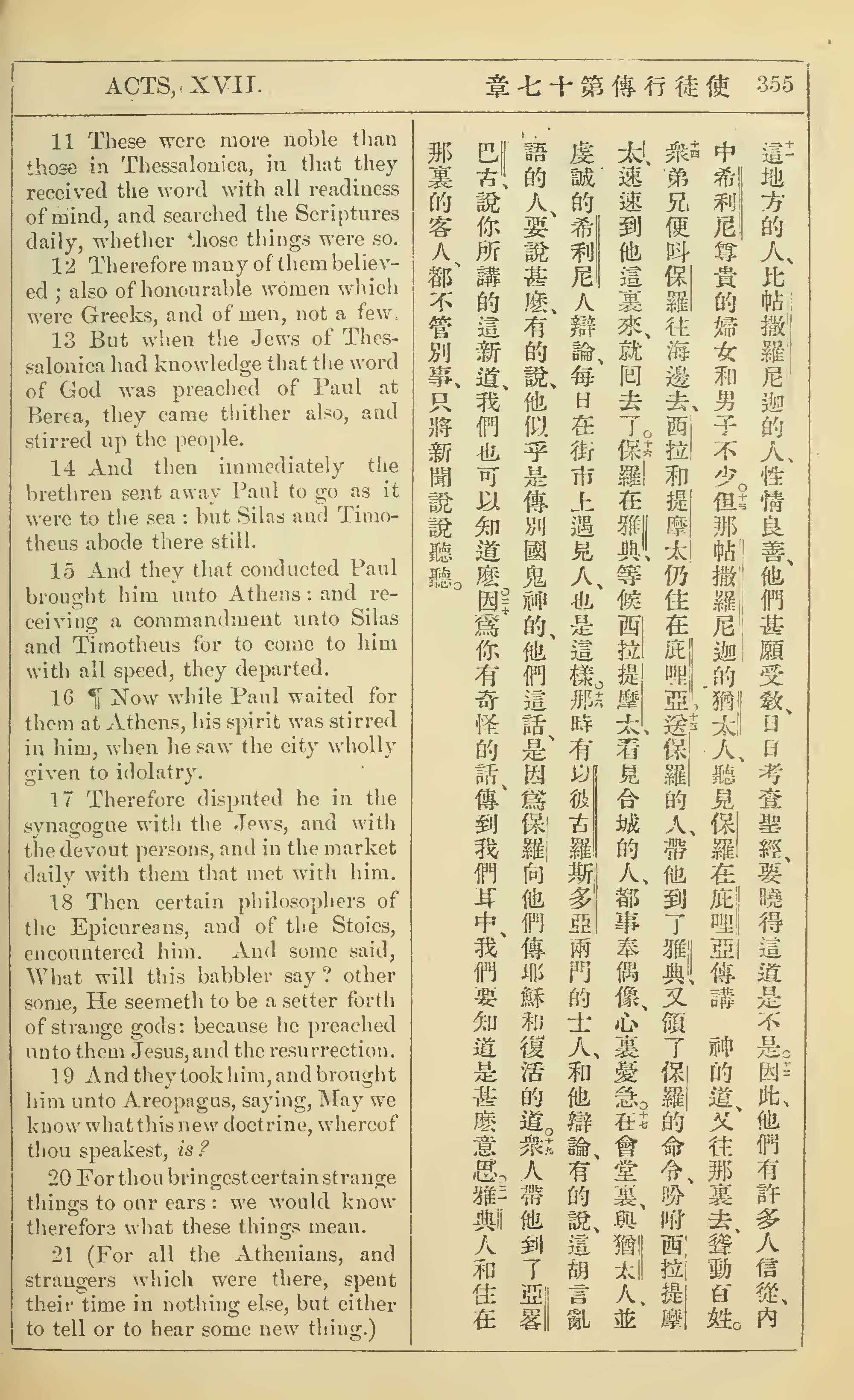 1902年新约全书(中英对照) 使徒行传 17 章 11 节到 17 章 21 节