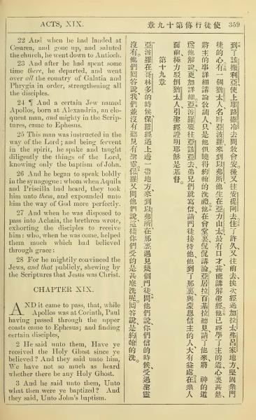1902年新约全书(中英对照) 使徒行传 18 章 22 节到 19 章 3 节