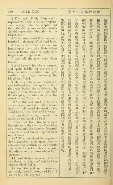 1902年新约全书(中英对照) 使徒行传 19 章 4 节到 19 章 15 节