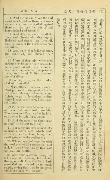 1902年新约全书(中英对照) 使徒行传 19 章 16 节到 19 章 26 节