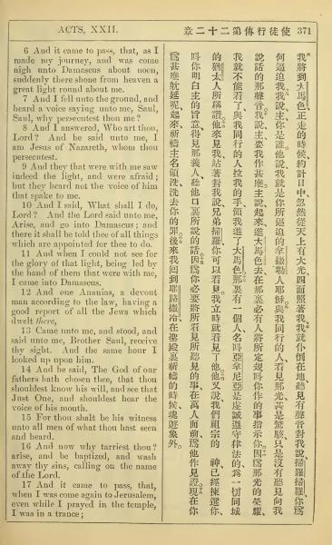 1902年新约全书(中英对照) 使徒行传 22 章 6 节到 22 章 17 节