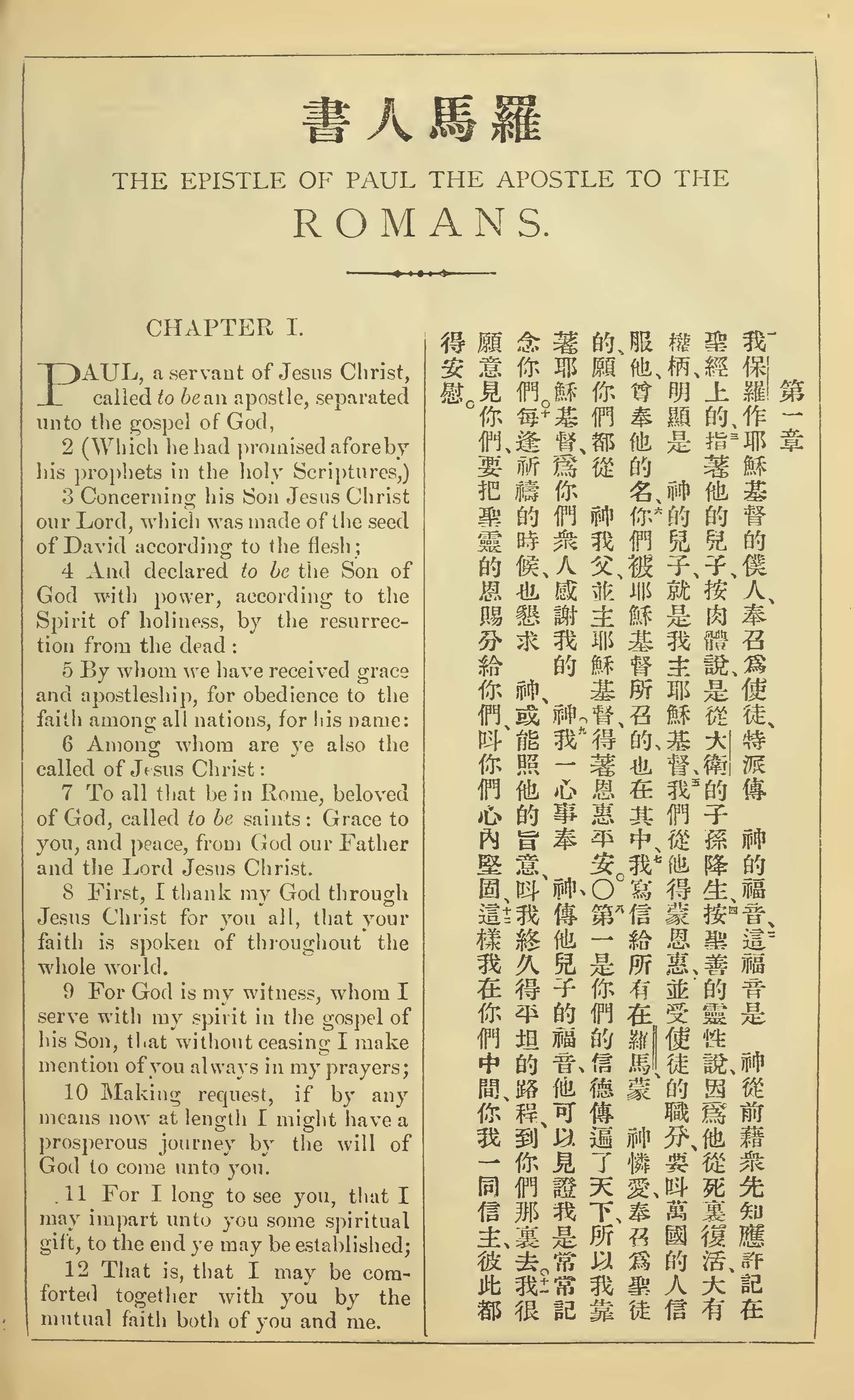 1902年新约全书(中英对照) 罗马书 1 章 1 节到 1 章 12 节
