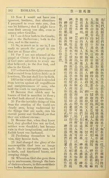 1902年新约全书(中英对照) 罗马书 1 章 13 节到 1 章 24 节