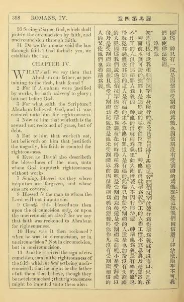 1902年新约全书(中英对照) 罗马书 3 章 30 节到 4 章 11 节