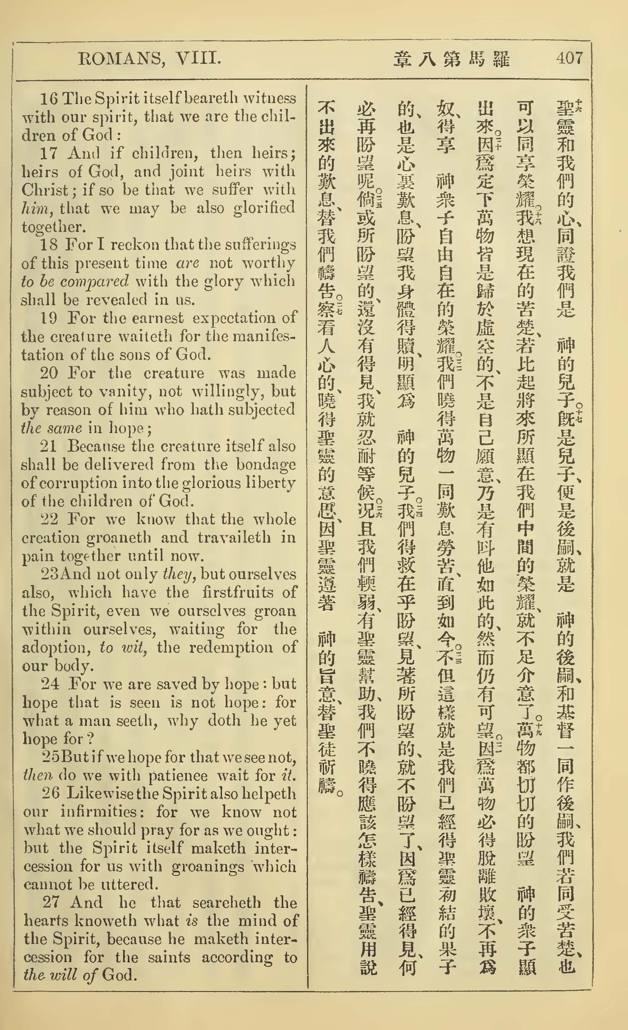 1902年新约全书(中英对照) 罗马书 8 章 16 节到 8 章 27 节