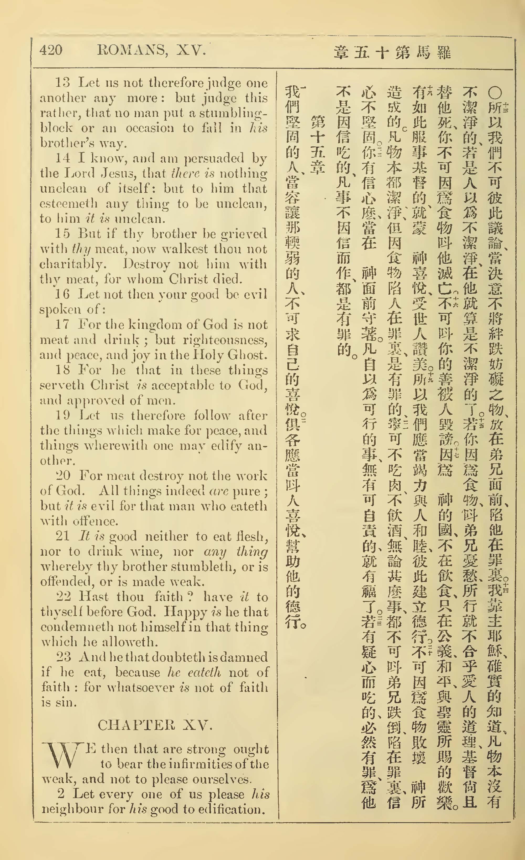 1902年新约全书(中英对照) 罗马书 14 章 13 节到 15 章 2 节