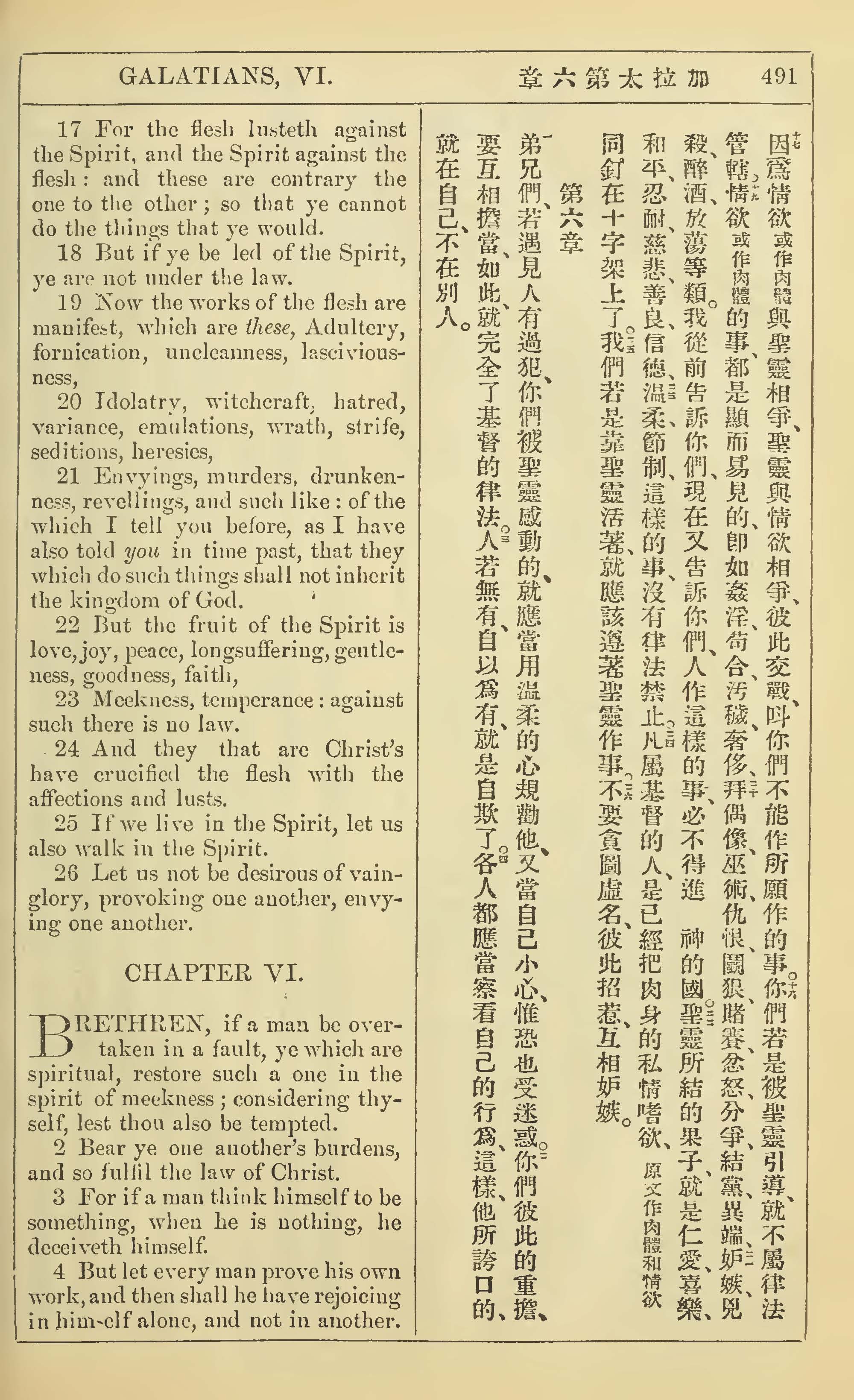 1902年新约全书(中英对照) 加拉太书 5 章 17 节到 6 章 4 节