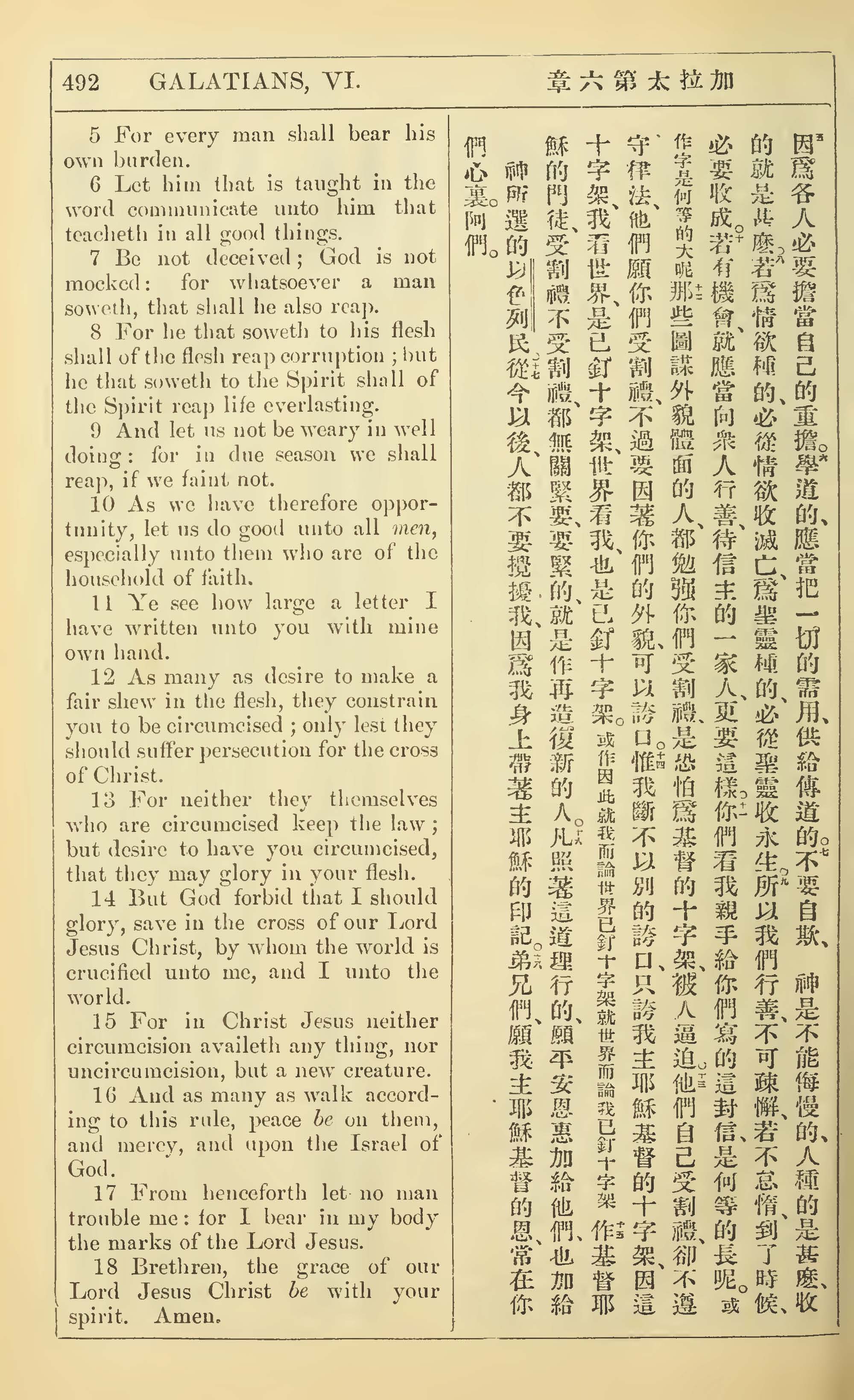 1902年新约全书(中英对照) 加拉太书 6 章 5 节到 6 章 18 节