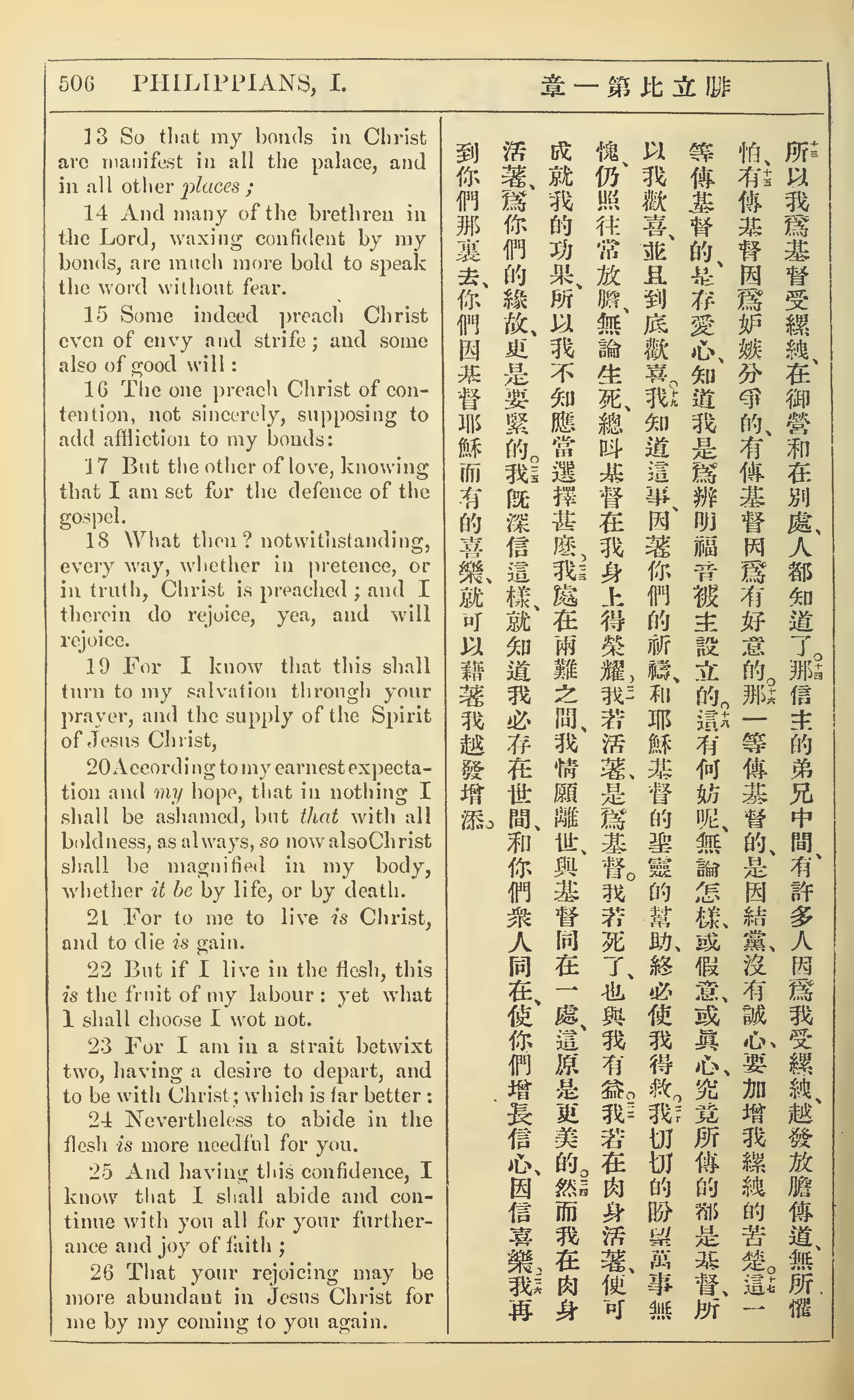 1902年新约全书(中英对照) 腓立比书 1 章 13 节到 1 章 26 节