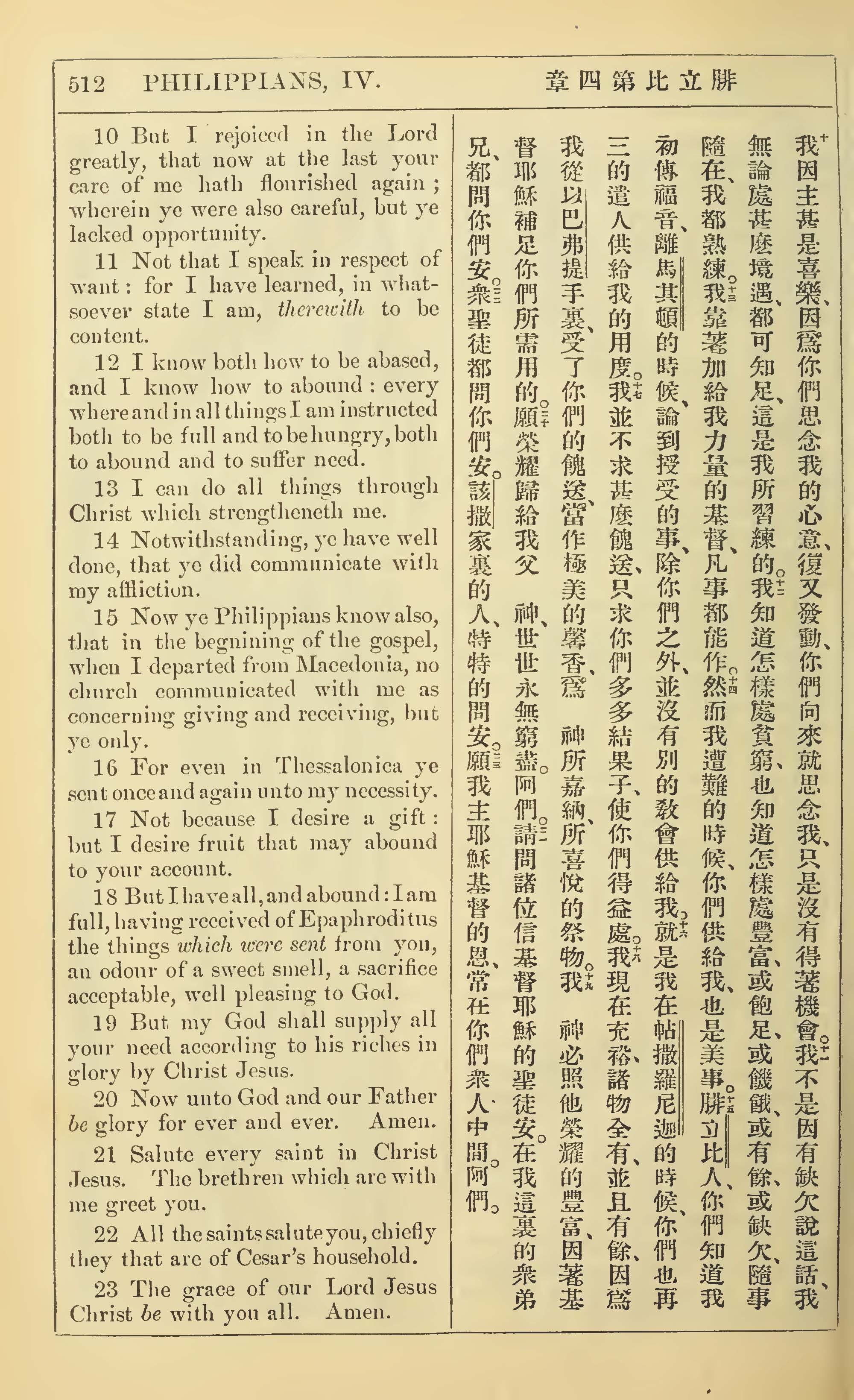 1902年新约全书(中英对照) 腓立比书 4 章 10 节到 4 章 23 节