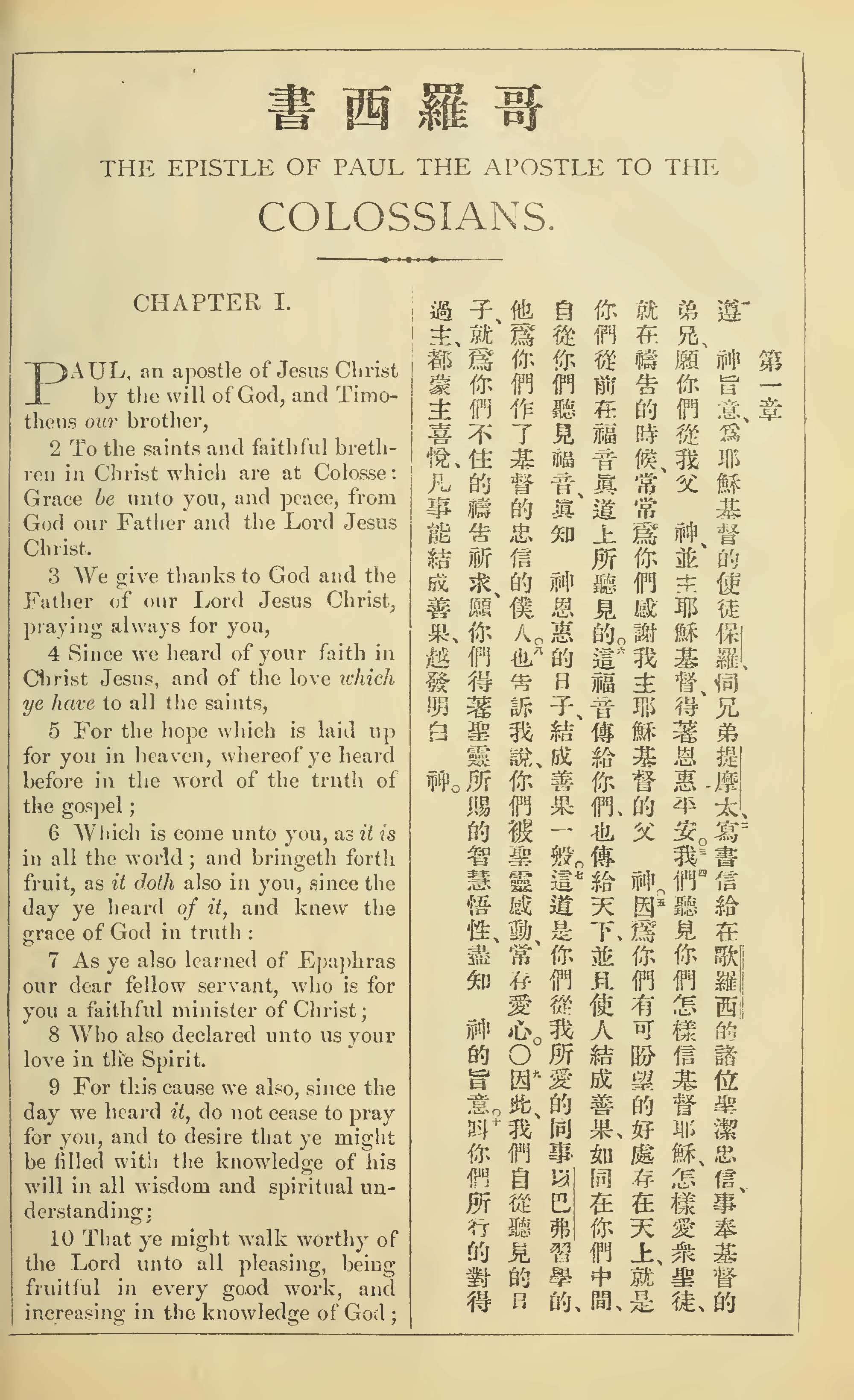 1902年新约全书(中英对照) 歌罗西书 1 章 1 节到 1 章 10 节