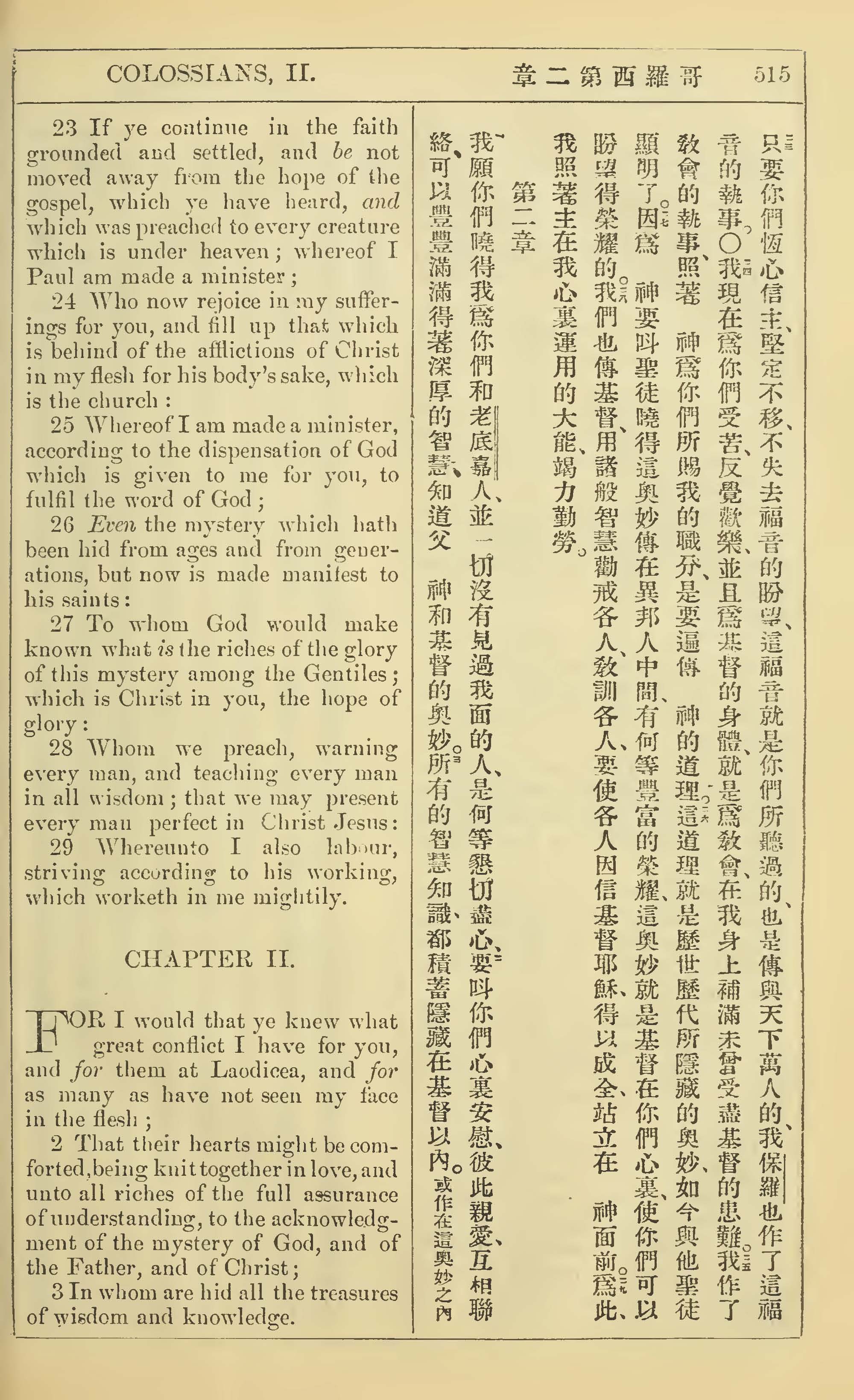1902年新约全书(中英对照) 歌罗西书 1 章 23 节到 2 章 3 节