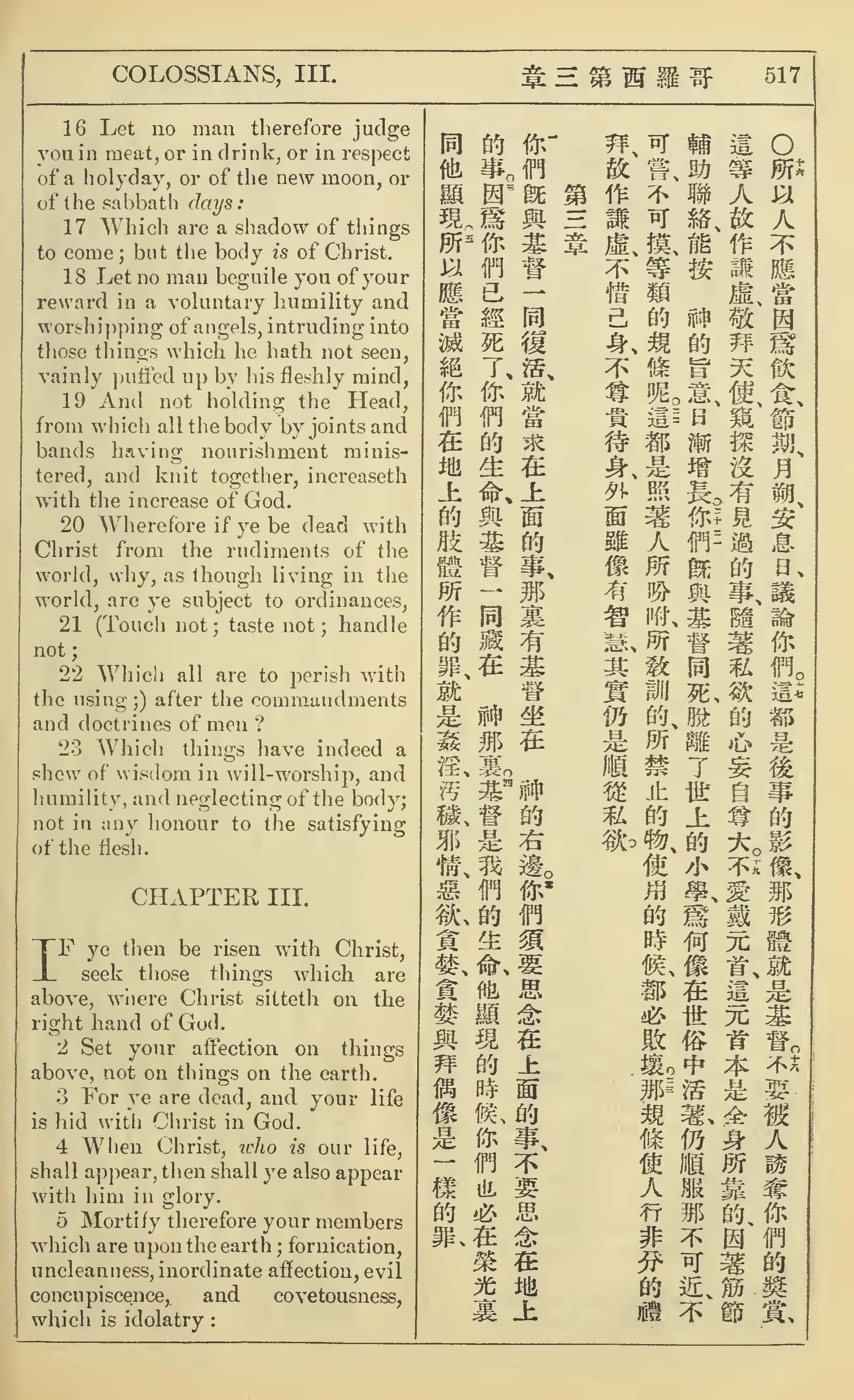 1902年新约全书(中英对照) 歌罗西书 2 章 16 节到 3 章 5 节