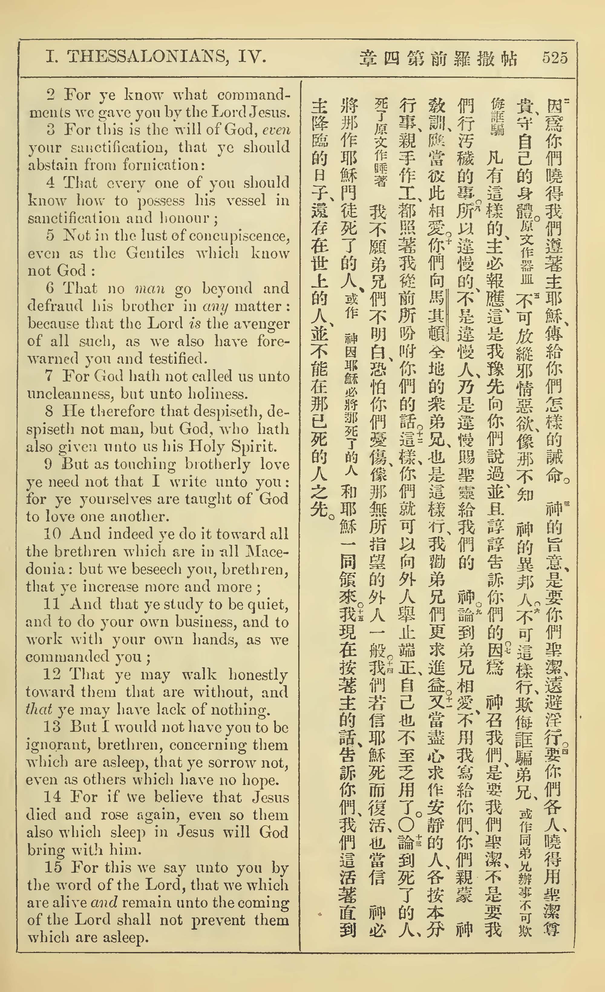 1902年新约全书(中英对照) 帖撒罗尼迦前书 4 章 2 节到 4 章 15 节