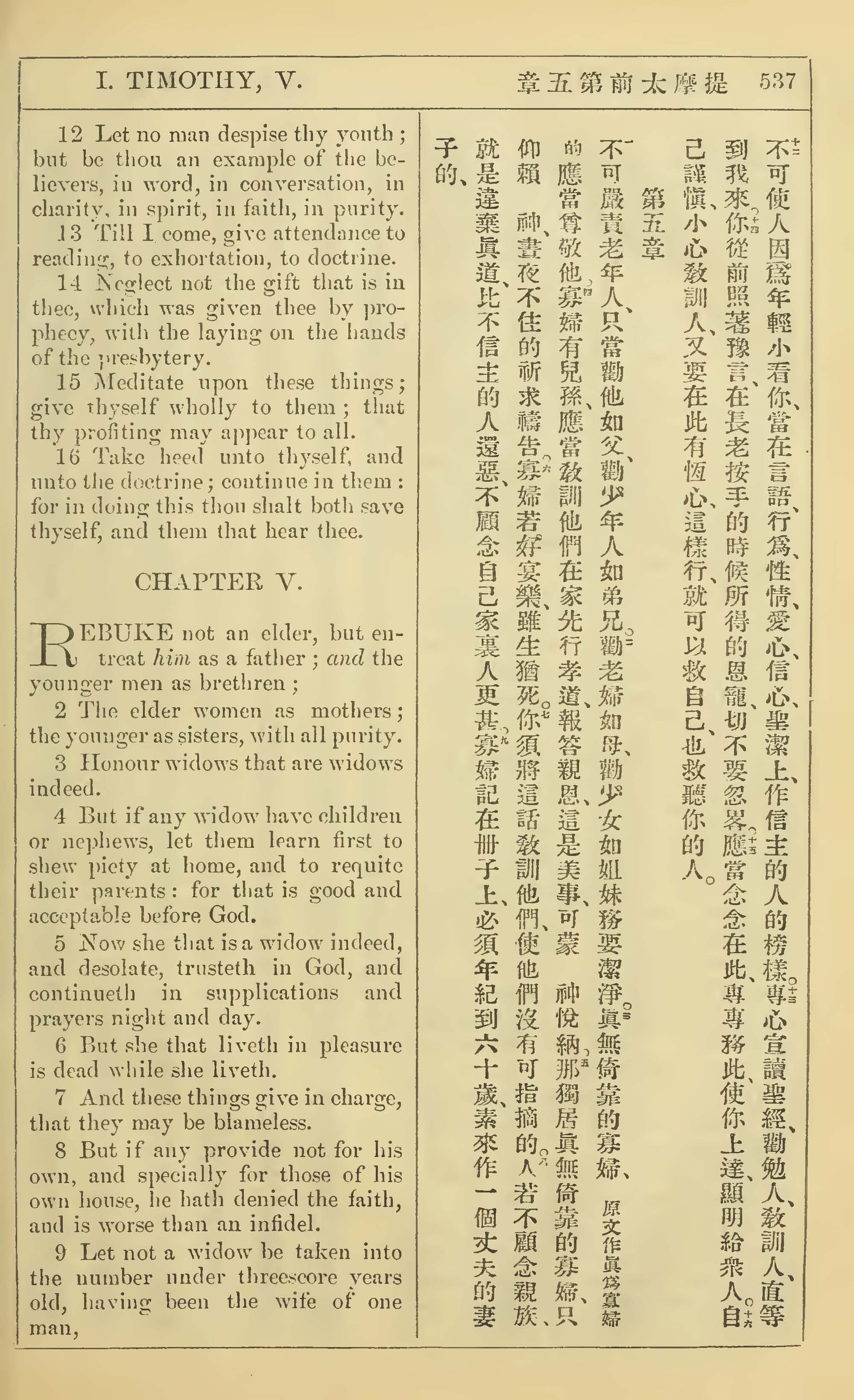 1902年新约全书(中英对照) 提摩太前书 4 章 12 节到 5 章 9 节