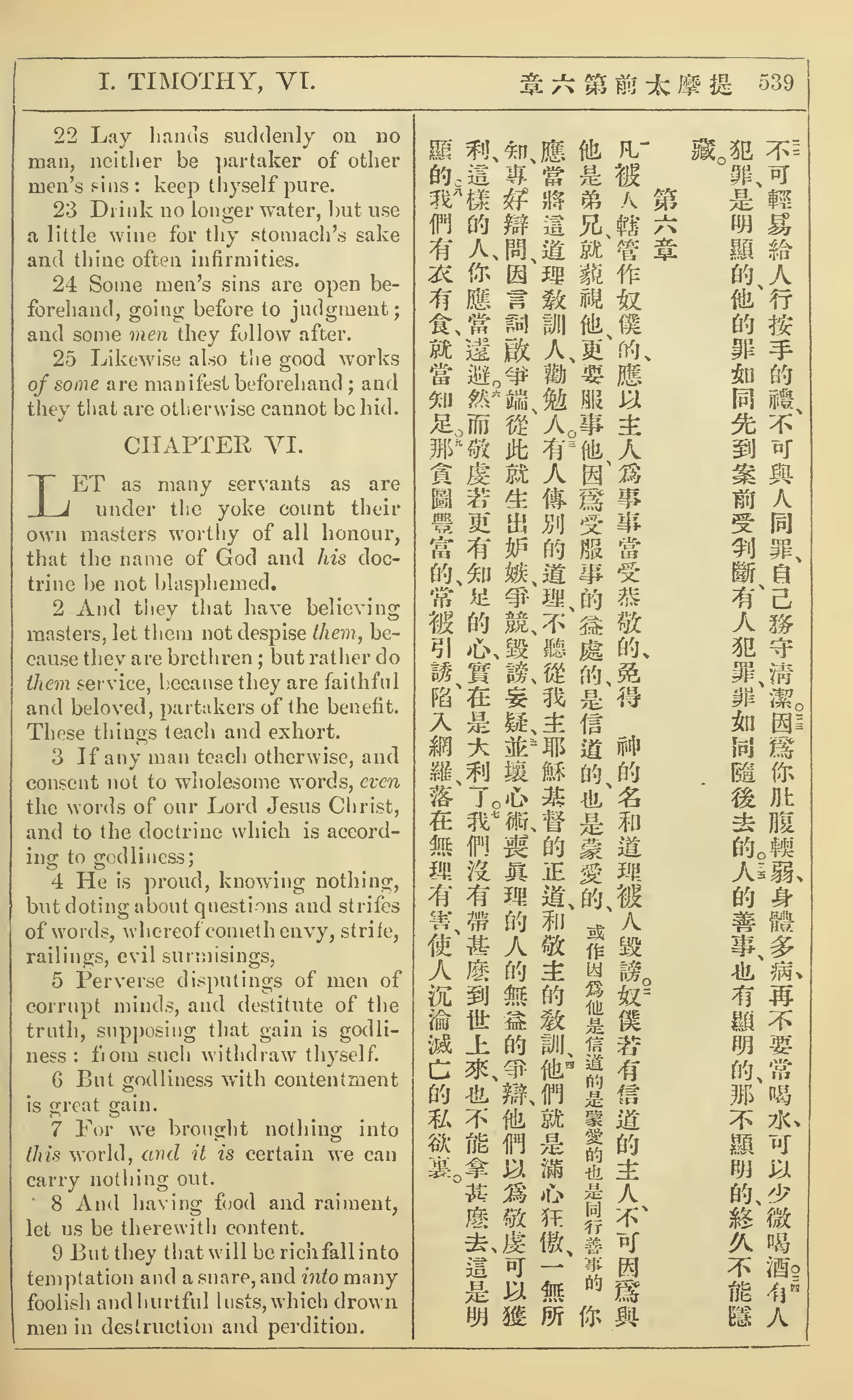 1902年新约全书(中英对照) 提摩太前书 5 章 22 节到 6 章 9 节