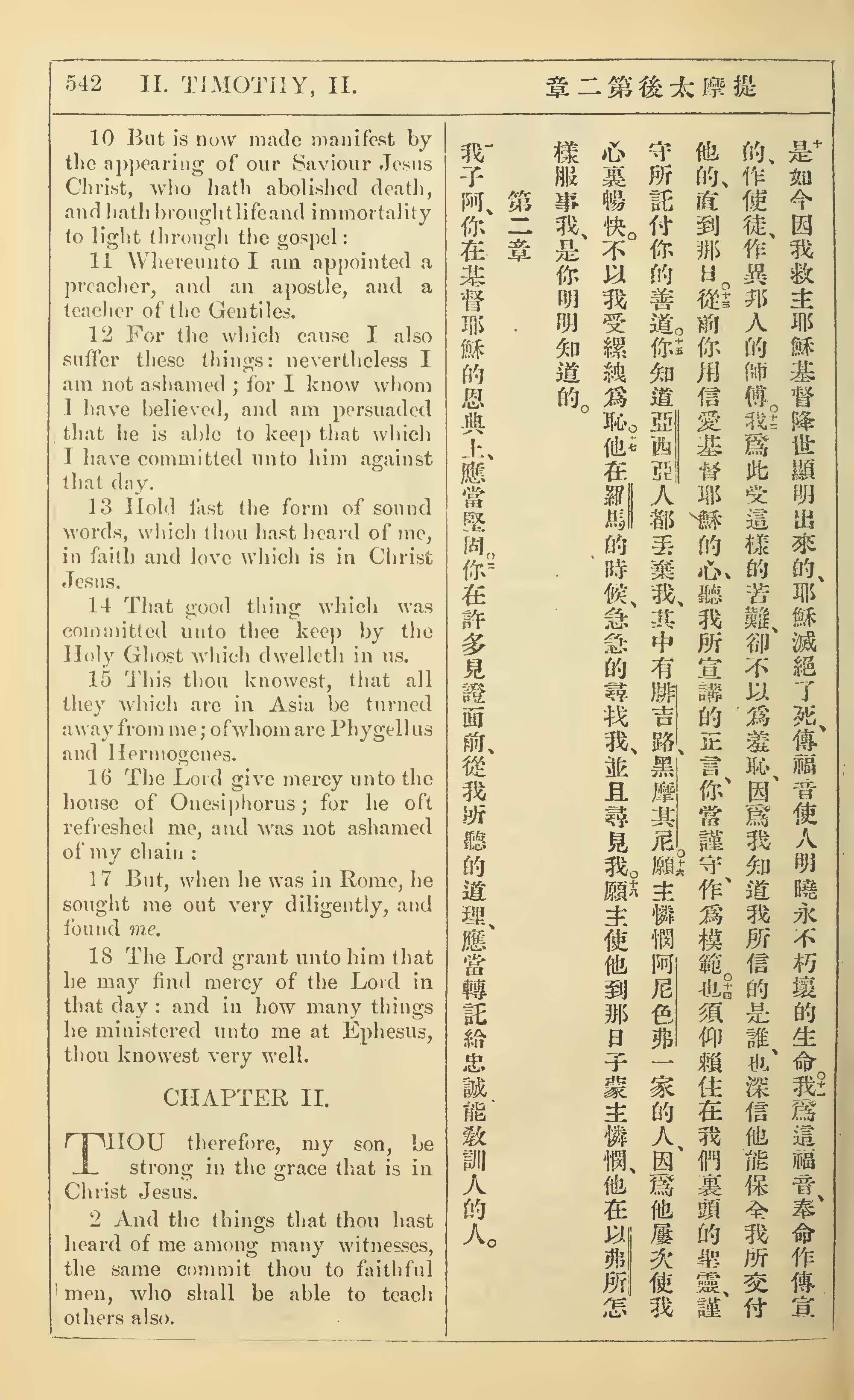 1902年新约全书(中英对照) 提摩太后书 1 章 10 节到 2 章 2 节