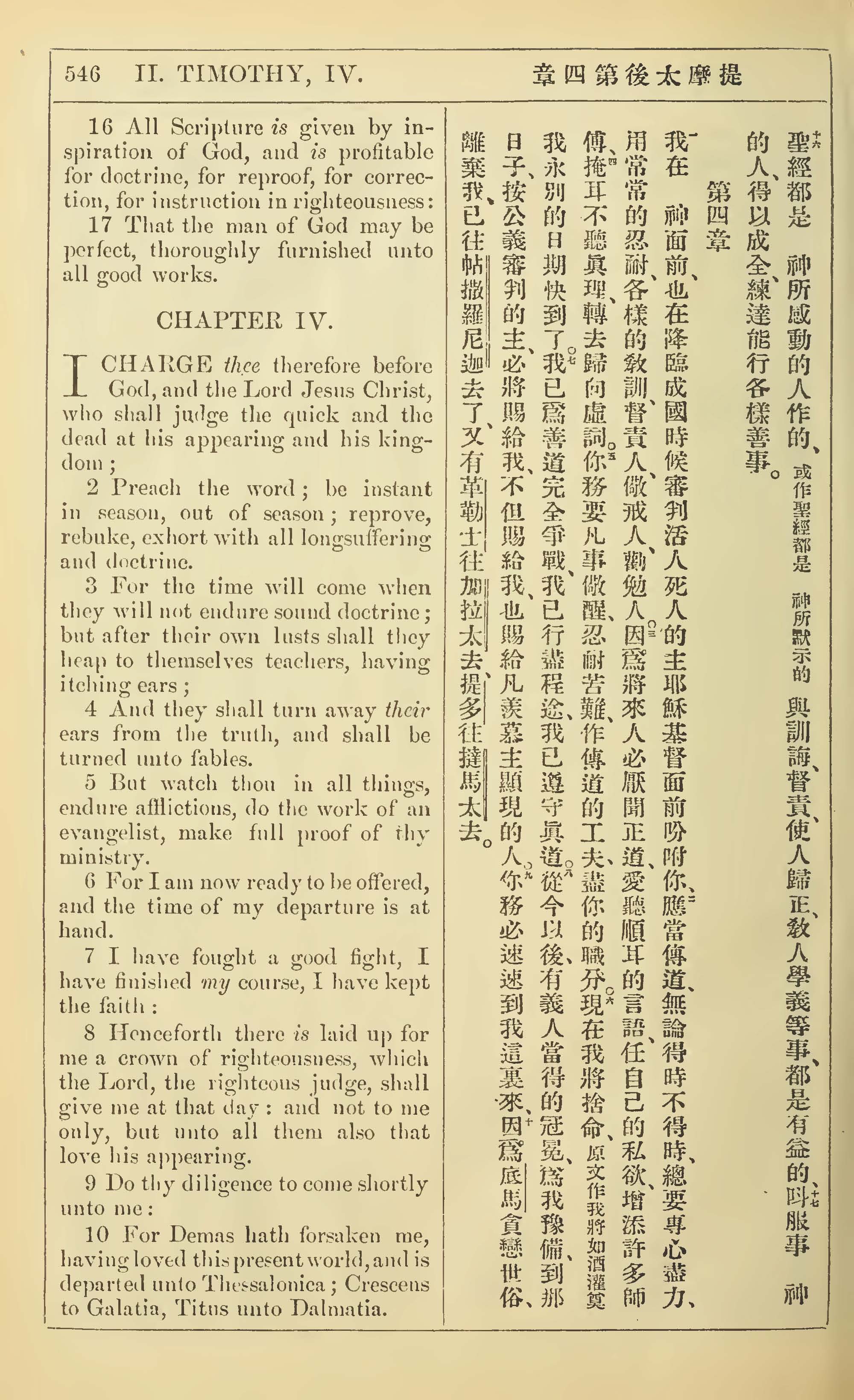1902年新约全书(中英对照) 提摩太后书 3 章 16 节到 4 章 10 节
