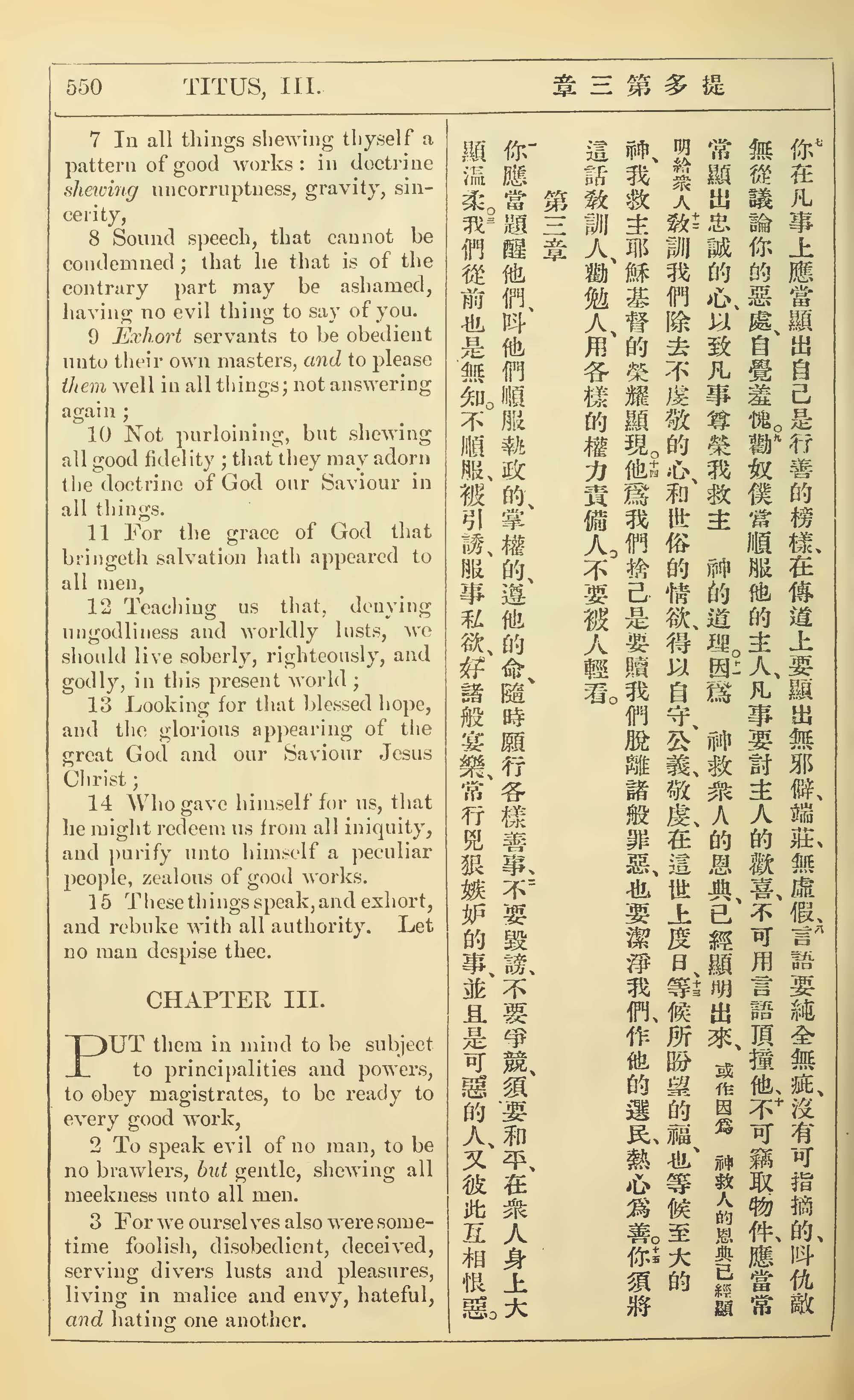 1902年新约全书(中英对照) 提多书 2 章 7 节到 3 章 3 节