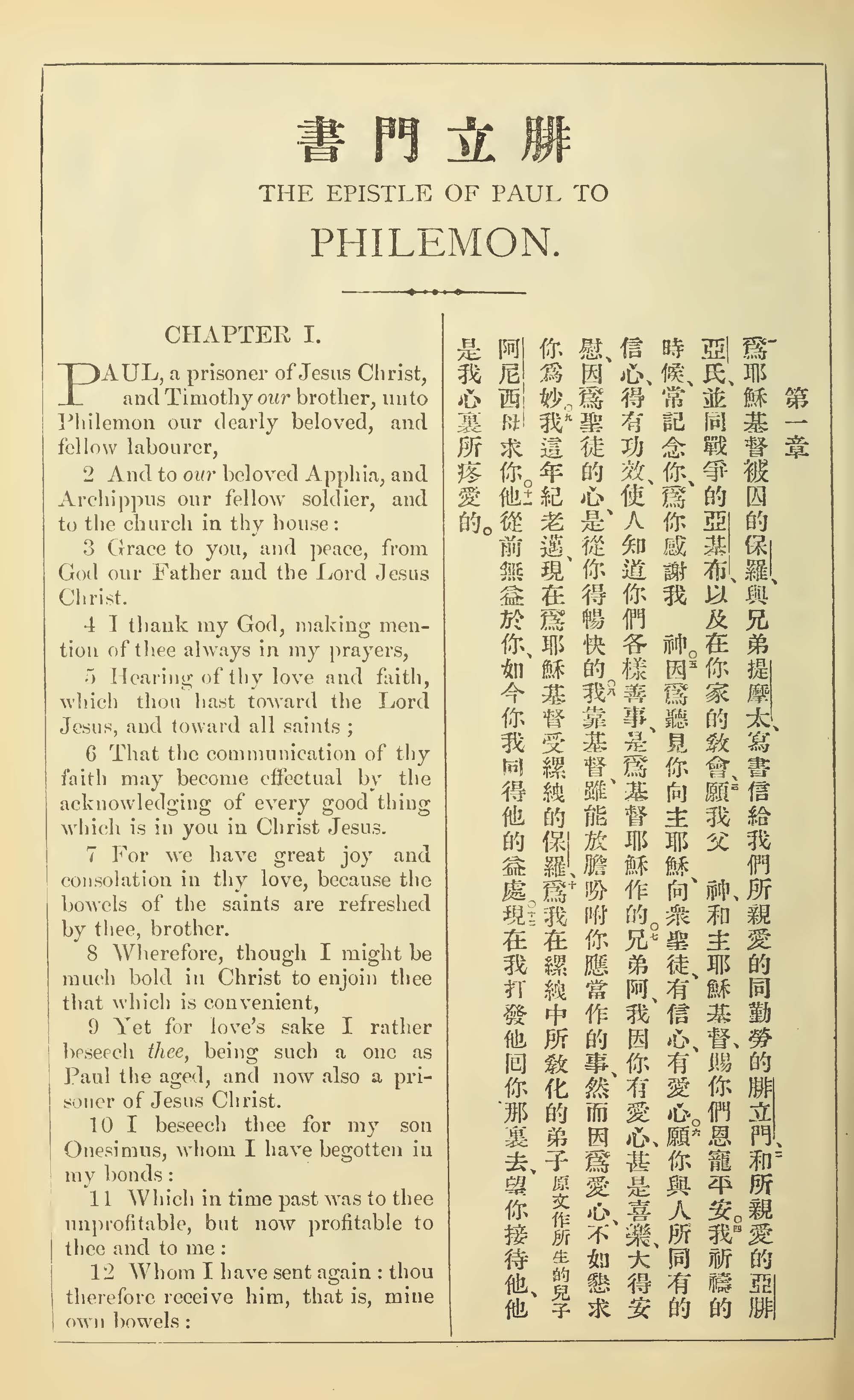 1902年新约全书(中英对照) 腓利门书 1 章 1 节到 1 章 12 节