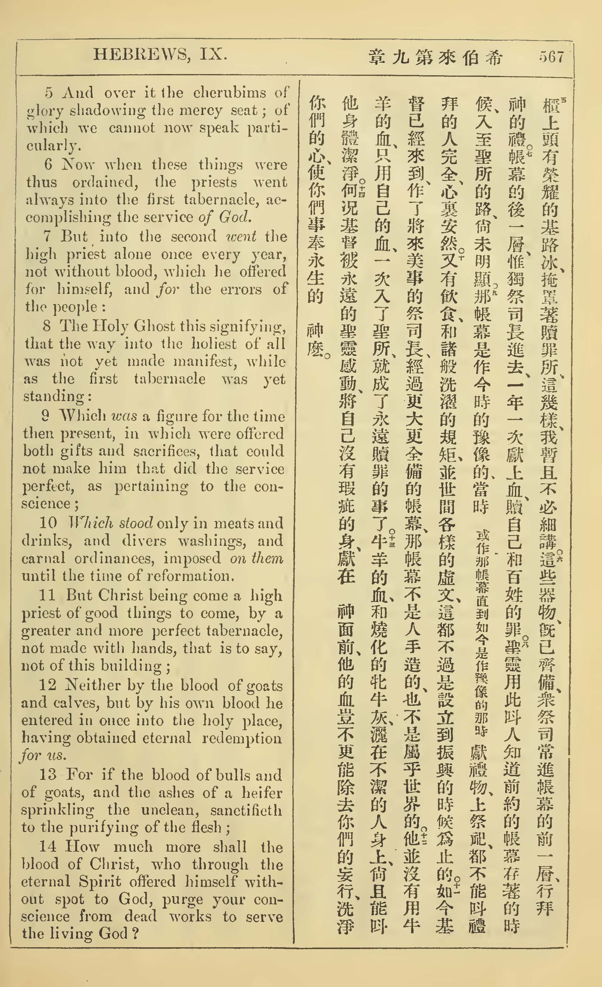 1902年新约全书(中英对照) 希伯来书 9 章 5 节到 9 章 14 节