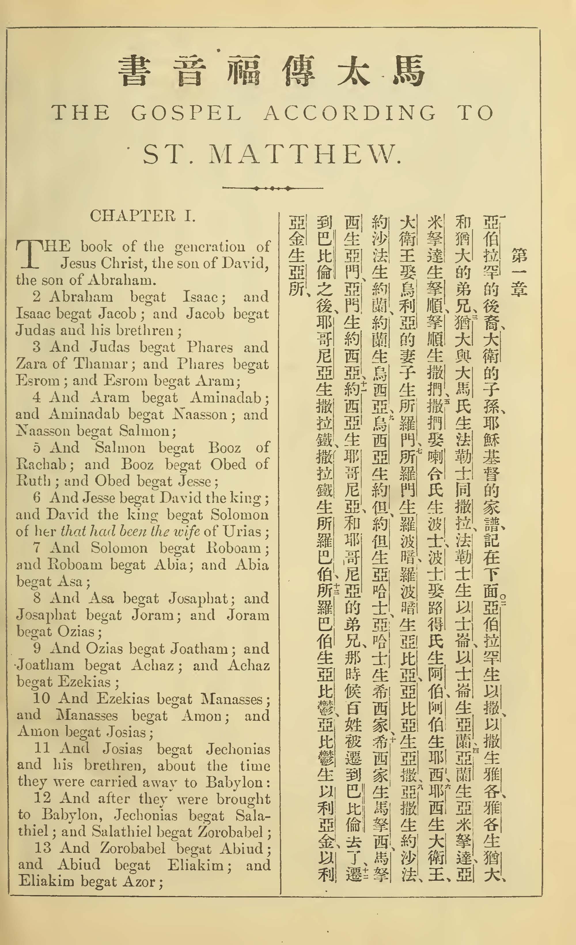 1902年新约全书(中英对照) 马太福音 1 章 1 节到 1 章 13 节