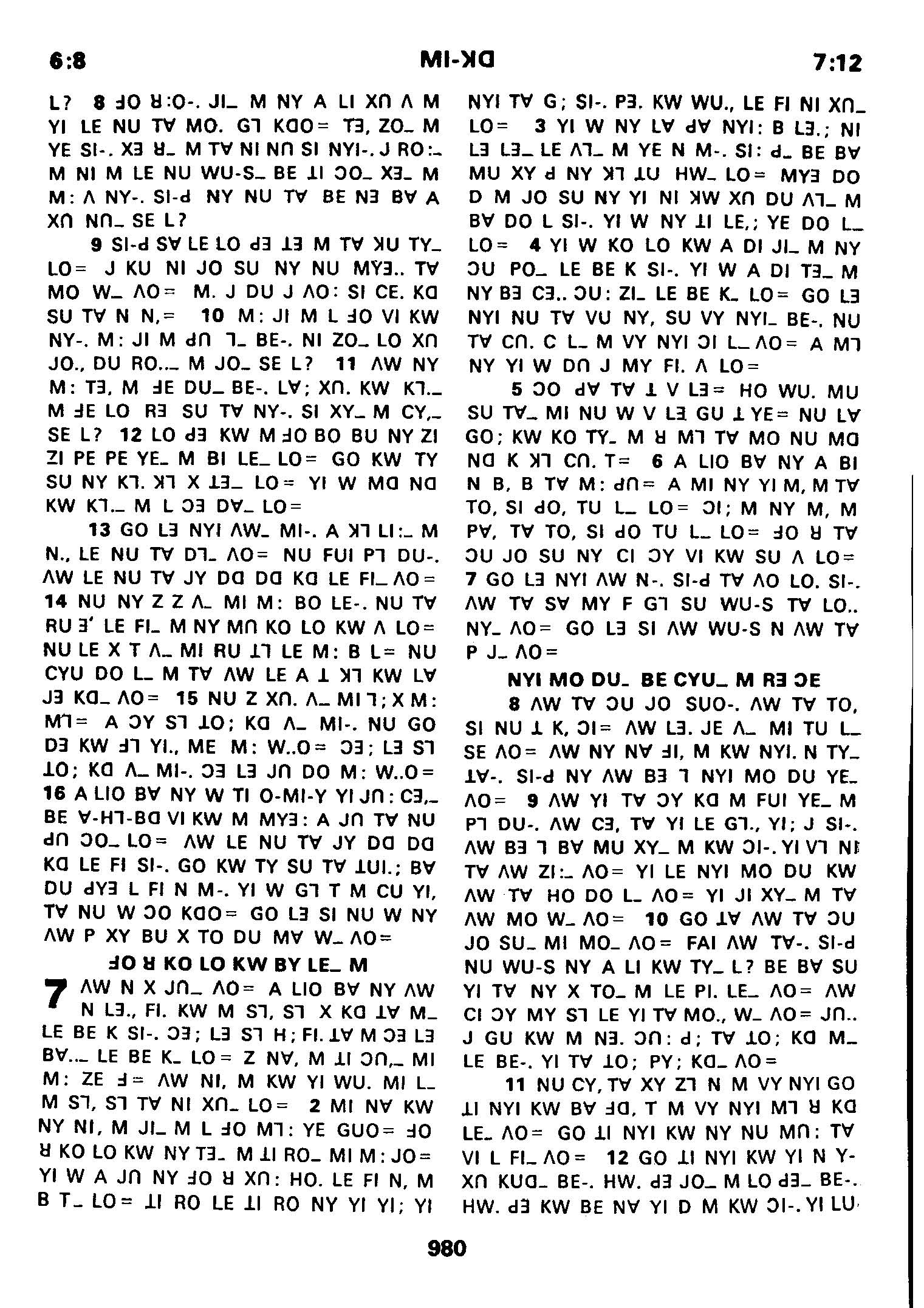 1980年傈僳语圣经全书 弥迦书 6 章 8 节到 7 章 12 节