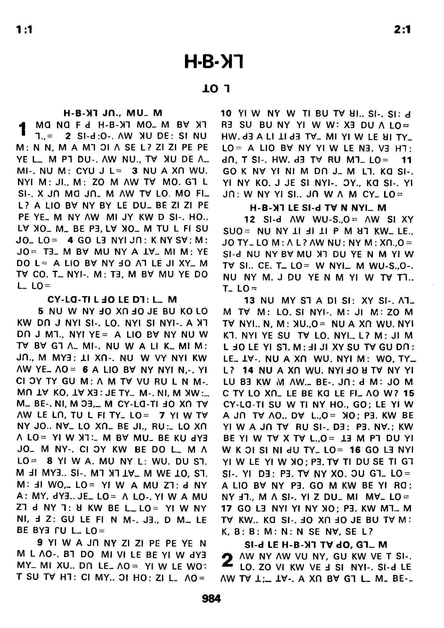 1980年傈僳语圣经全书 哈巴谷书 1 章 1 节到 2 章 1 节