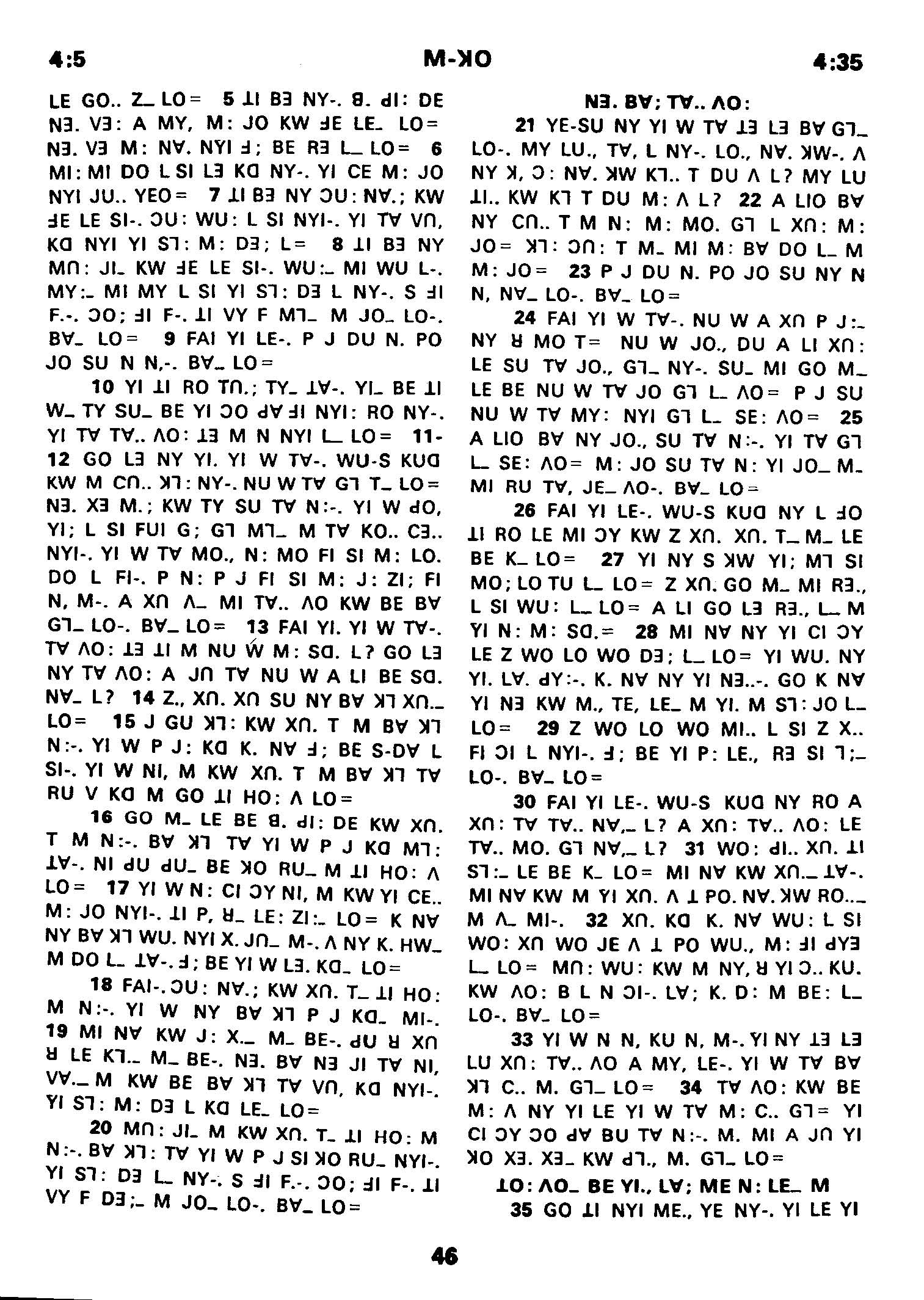 1980年傈僳语圣经全书 马可福音 4 章 5 节到 4 章 35 节